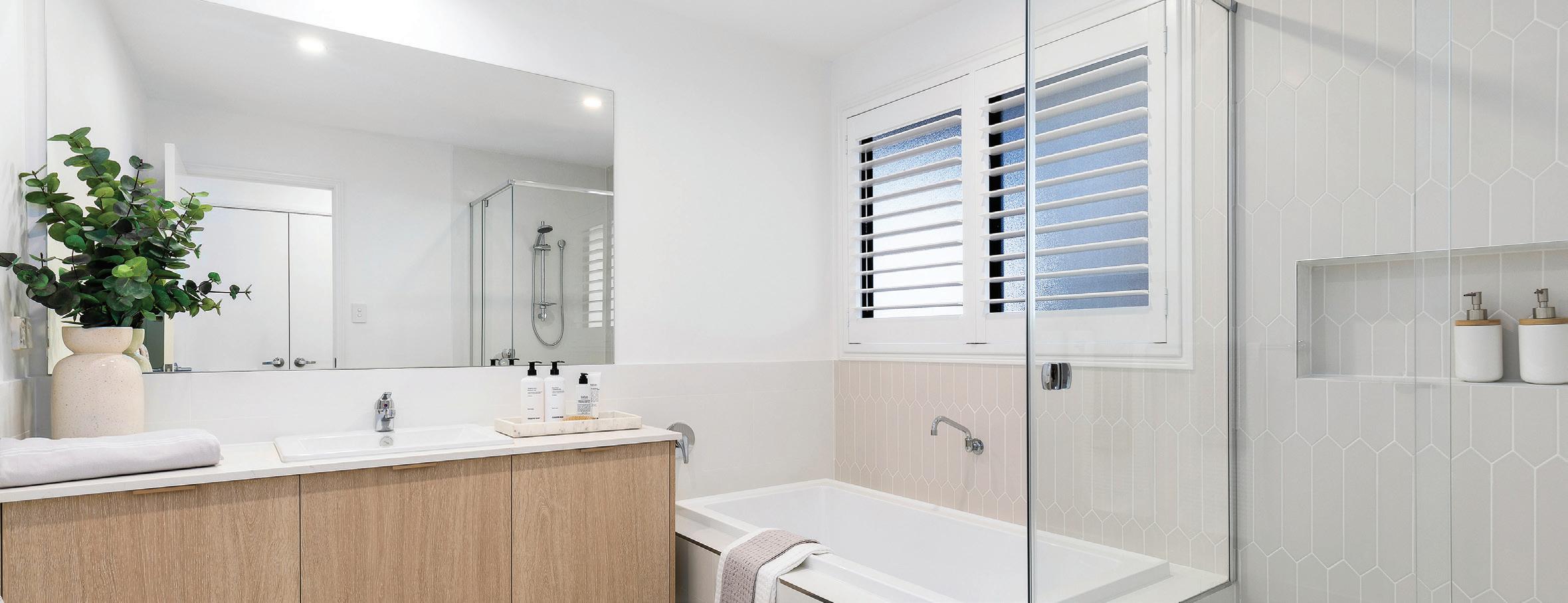 Upgrade to 20mm Caesarstone® vanity top in wide range of colours to main bathroom and ensuite bathroom with porcelain basin from builder’s range with overflow.