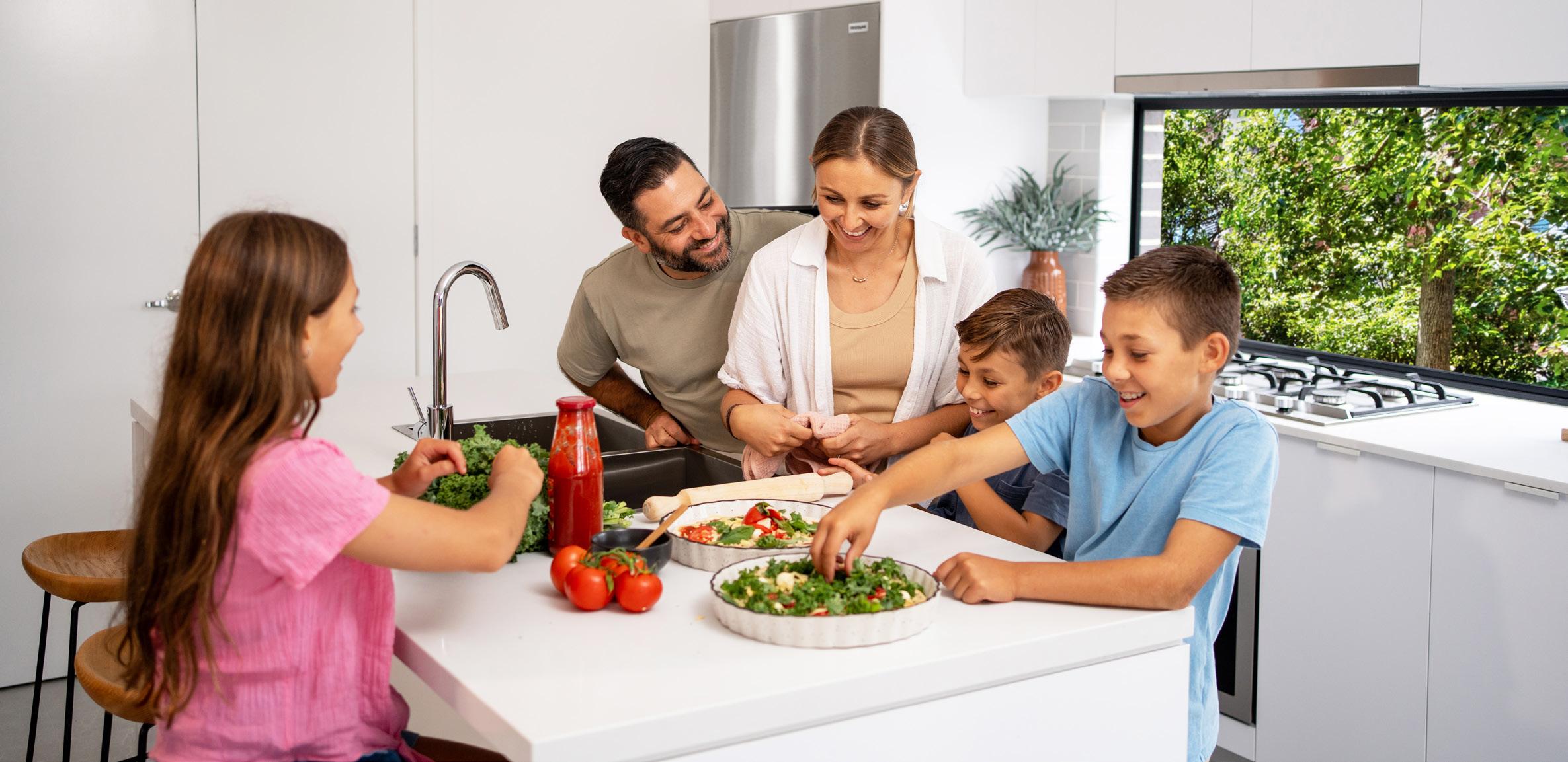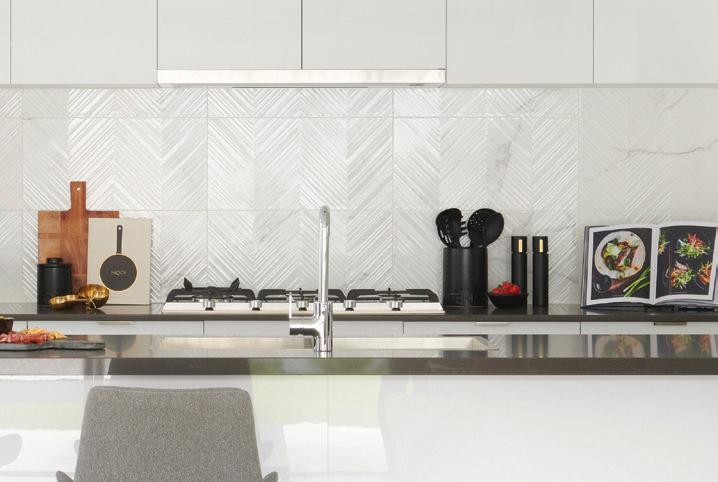 Feature tile kitchen splashback with your choice of ceramic tiles with a $60/sqm retail tile allowance.