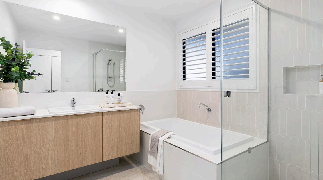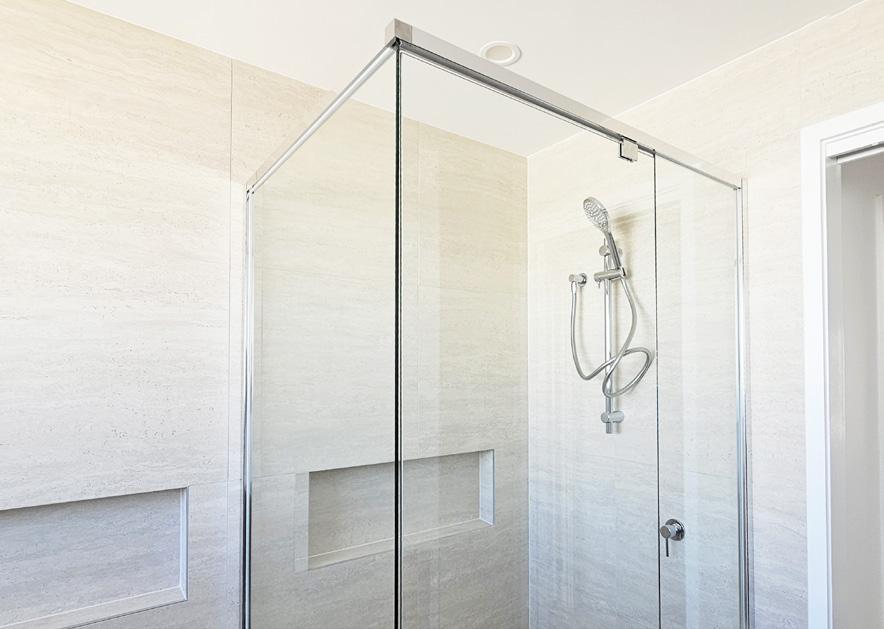 Upgrade to a Pivot Semi Frameless Shower Screen in the main bathroom and main bedroom ensuite , available in four colour choices from the builder’s range: Chrome, Brushed Nickel, Matt Black, and Brushed Gold.