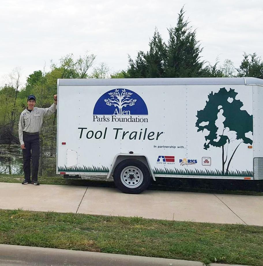 The Allen Parks Foundation Tool Trailer program provides tools and supplies to groups (such as church, scouting or neigh borhood groups) in Allen for maintaining or enhancing Allen parks or neighborhood public spaces. Projects may include neigh borhood clean-ups, park or open space maintenance or beautification, landscape plantings, etc. The Tool Trailer is avail able free of charge for volunteer groups (non-commercial use) that would like to