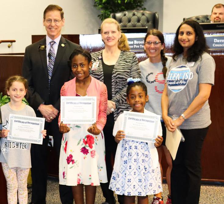 Keep Allen Beautiful sponsors various con tests in schools. This includes the Recycled Art Contest, Reuse-a-Shoe Contest and Don’t Mess with Texas Contest for grades K-12. Grades 4-5 may compete in the Ar bor Day Poster Contest, with curriculum available for grade 5. Visit CityofAllen.org/ KABoutreach or call 214.509.4552.