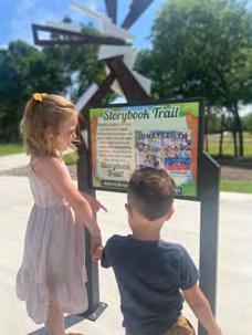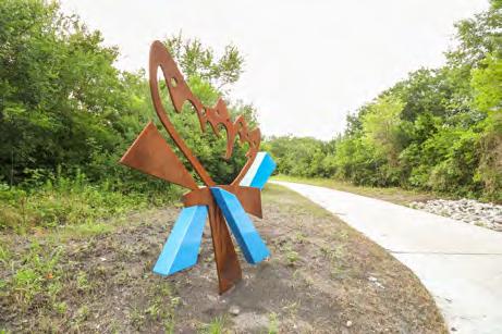 In partnership with the Allen Parks Foundation and the Public Art Committee, the half-mile paved trail loop outside the Stephen G. Terrell Recreation Center has been transformed into an immersive and engaging experience for visitors. This thoughtful fusion of art, nature, and storytelling creates a memorable experience that resonates with visitors of all ages. Commissioned by the Public Art Committee, the trail features five striking sculptures that greet explorers with whimsical reinterpretations of beloved Allen residents: a butterfly, bird, coyote, snail, and person. Through the support of the Allen Parks Foundation, the kiosks along the trail offer a unique self-guided experience and in collaboration with the Allen Library, visitors can enjoy a delightful children's storybook, with pages displayed at each kiosk.