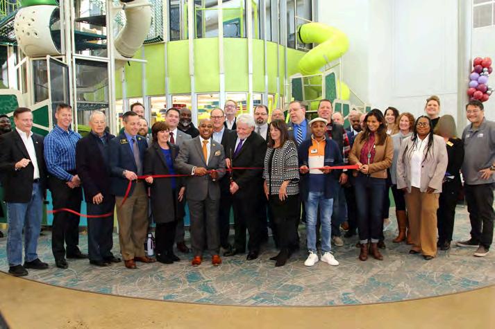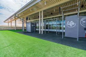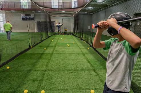 A 149,000 square-foot brand-new facility with a fully equipped fitness floor, indoor track, a vibrant playroom, indoor playground, batting cages, turf zone, concessions, catering kitchen, and golf simulator.