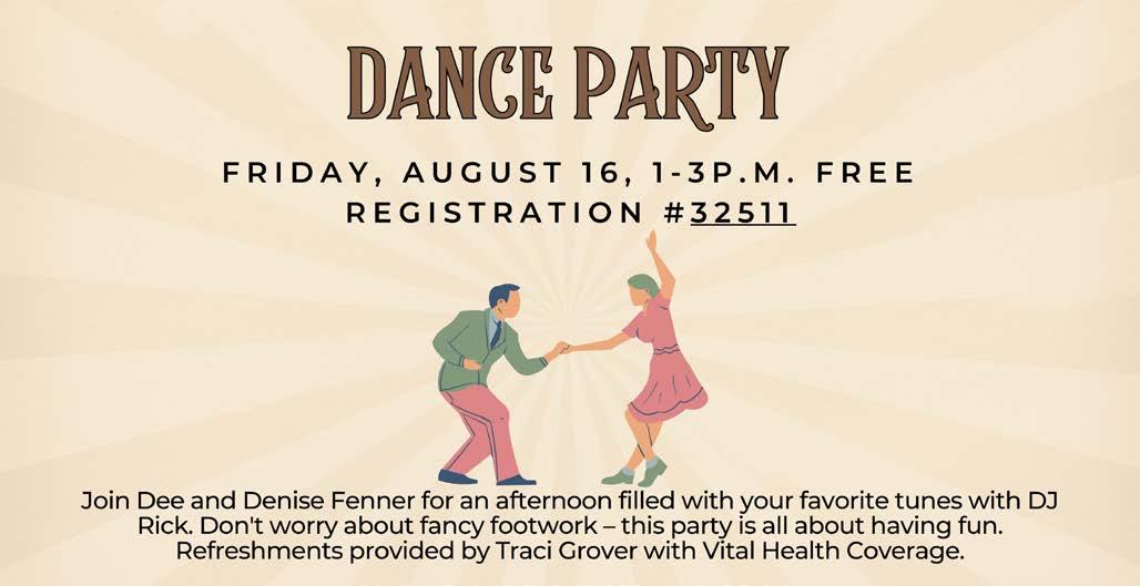 32804, F, 7/5-7/26, 9-10AM, $19 32806, M, 8/5-8/26, 12:30-1:30PM, $15 32807, F, 8/2-8/30, 9-10AM, $15 (NO CLASS 7/22, 8/16, 8/19 & 8/23)