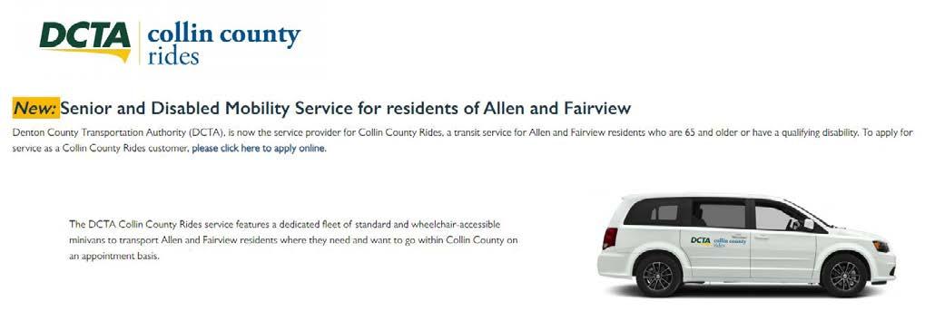 Transportation is provided to and from the Center for Allen residents who do not have their own transportation. Please see a staff member at the front desk for more information and how to make reservations.
