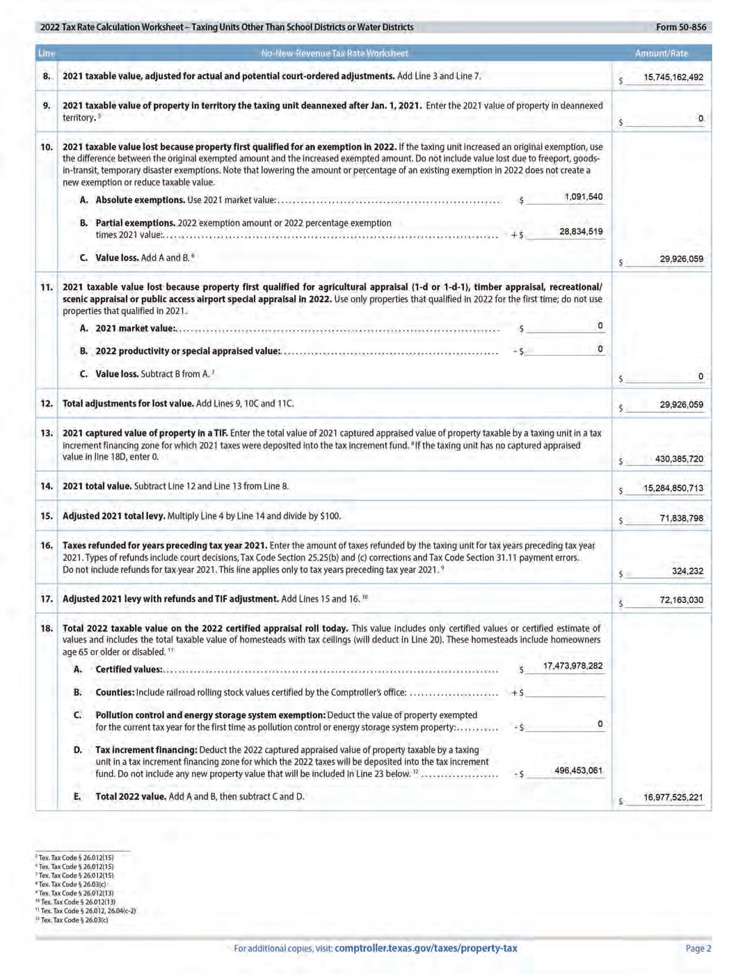 (2017 avg.) $0.483572 $0.510000 $1,610 $1,698 $88 *No New Revenue Tax Rate (NNR) began in 2020 in prior years it was the Effective Tax Rate. Assessed Property Valuation (in Billions) 8.37 9.16 10.18 11.23 12.37 13.60 14.46 14.96 15.76 18.11 2014201520162017201820192020202120222023 Strategic