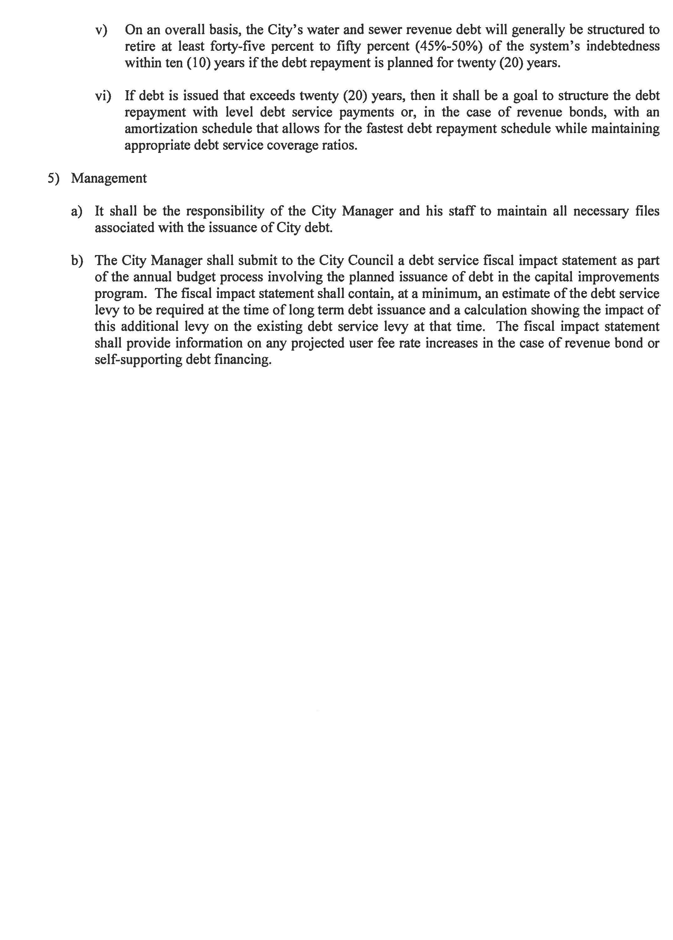 Historically, Water and Sewer infrastructure has been financed on a pay-as-you-go basis. The fund has been faced with a potentially substantial increase in rates driven by the increase in the wholesale cost of water and the rehabilitation costs of aging infrastructure. No revenue bonds were issued in FY2024.