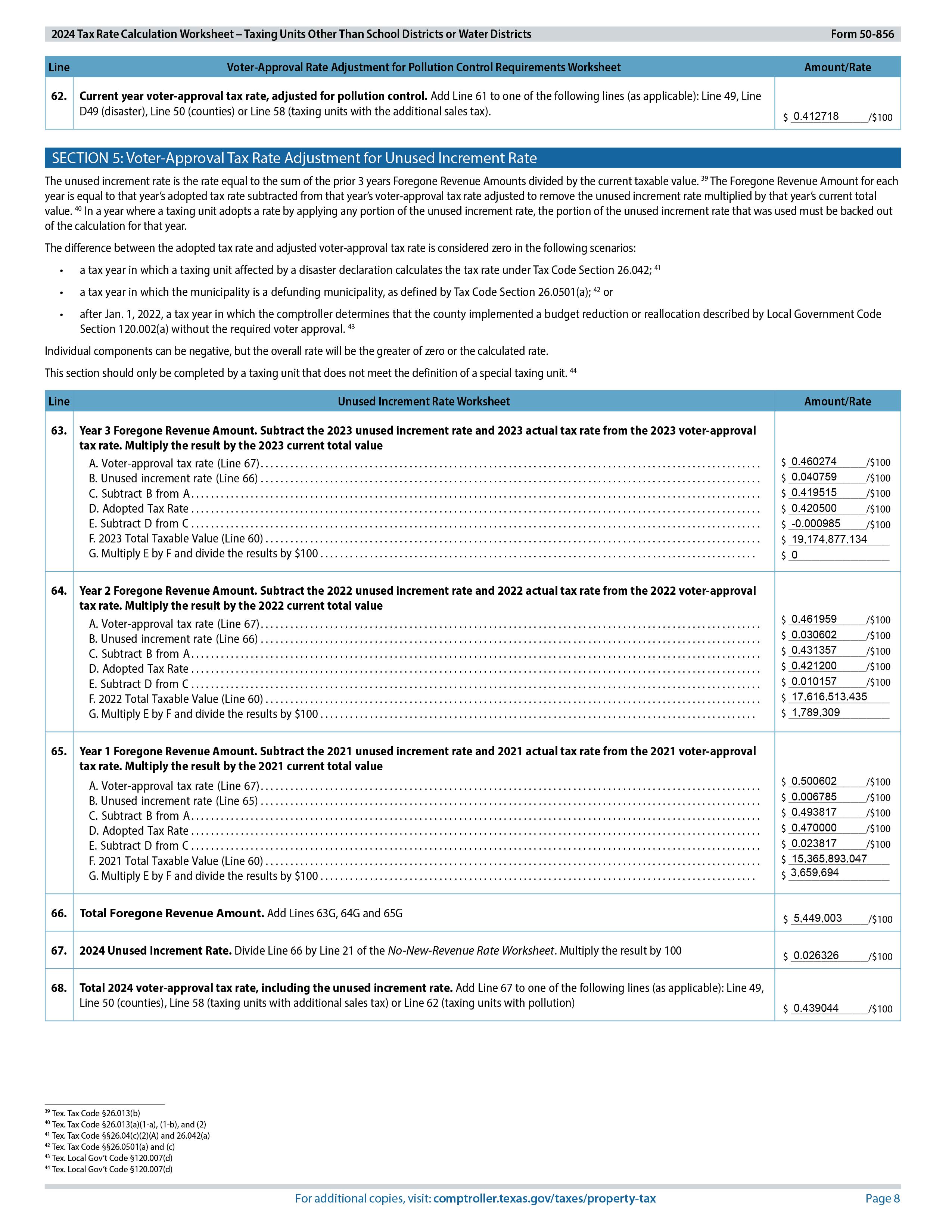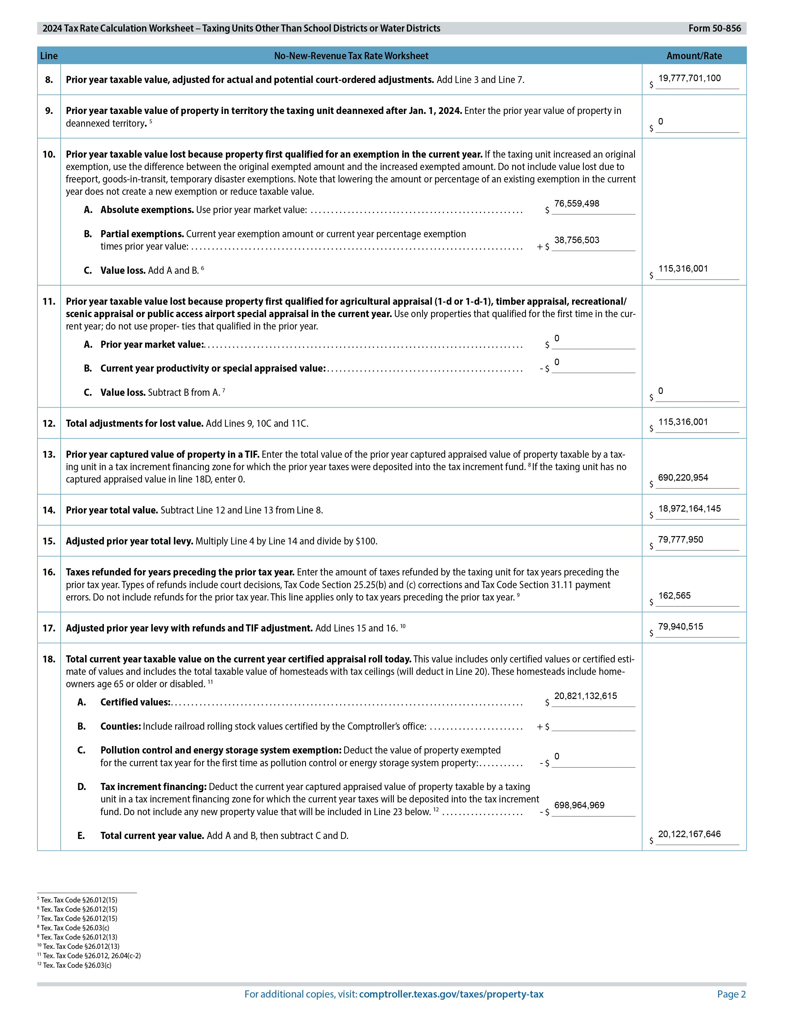 Tax year 2024 is the fourth year of implementation of Senate Bill #2 from the 86th Legislative Session. This bill set limits of 3.5% growth in operations and maintenance revenue from property taxes with mandatory elections if this rate is exceeded. Senate Bill #2 allows for growth of more than 3.5% without an election if a City used less than 3.5% growth in the previous 4 years.