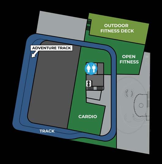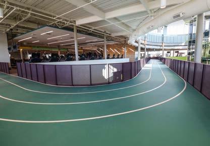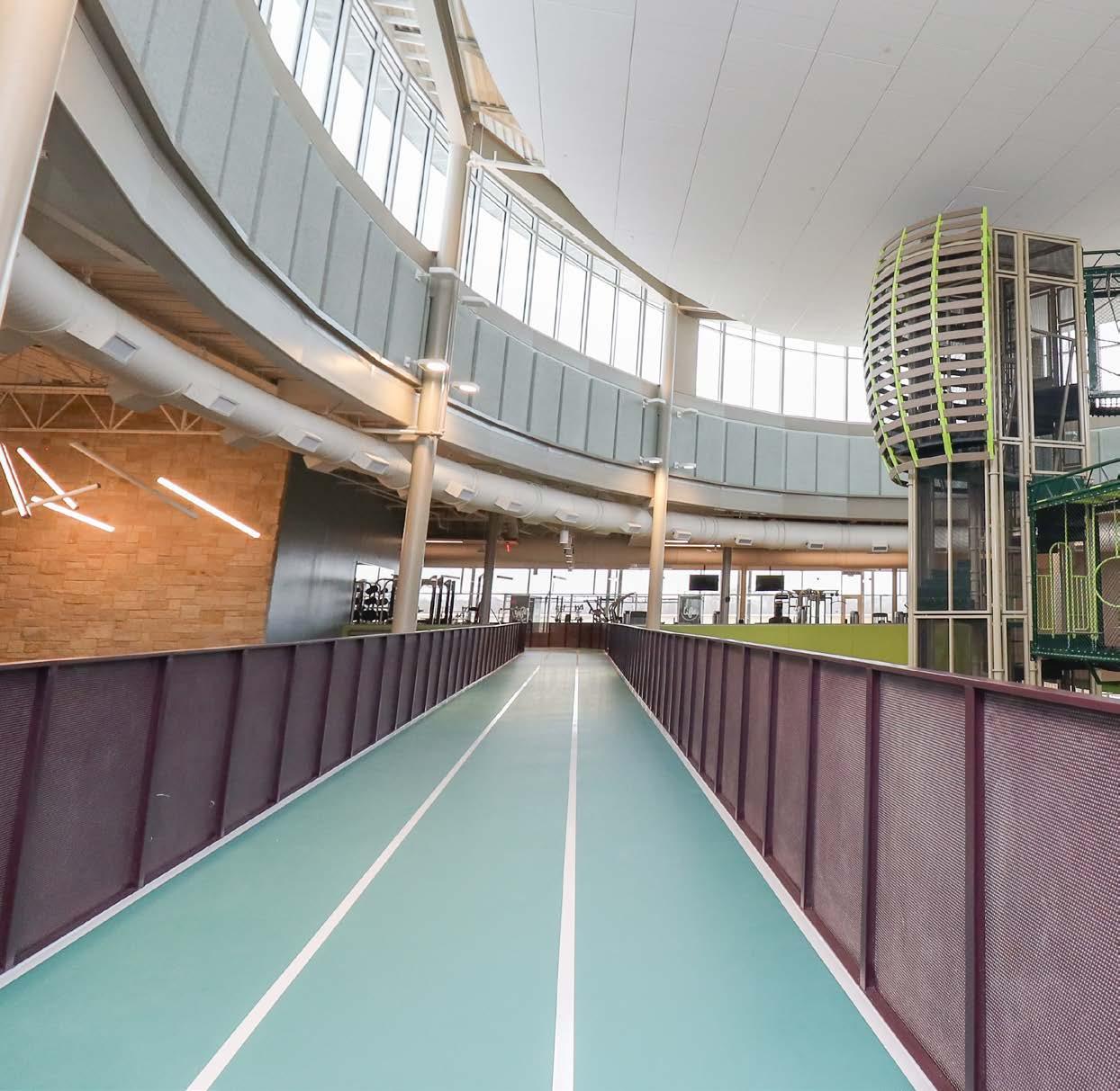 For the seasoned runner, leisurely walker and everyone in between, our indoor adventure track offers a comfortable place to move year-round. The track loop is 1/9-mile and adventure track (with stairs and inclined options) is 1/8-mile loop.