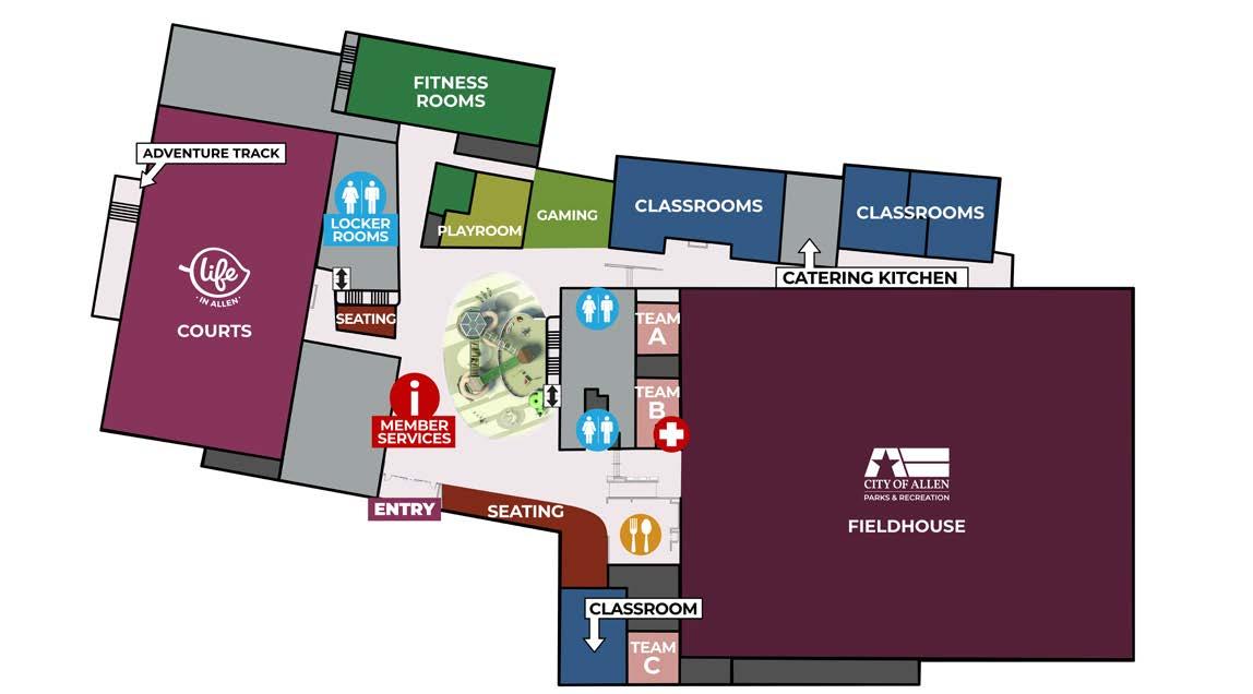 The facilities are controlled access. All persons entering the facility must have a current membership, purchase a day pass, or participate in a fee-forservice recreation program. Facilities do not allow free access for any persons entering the facility. For ASA practices, tournaments and events, access to the fieldhouse is granted.