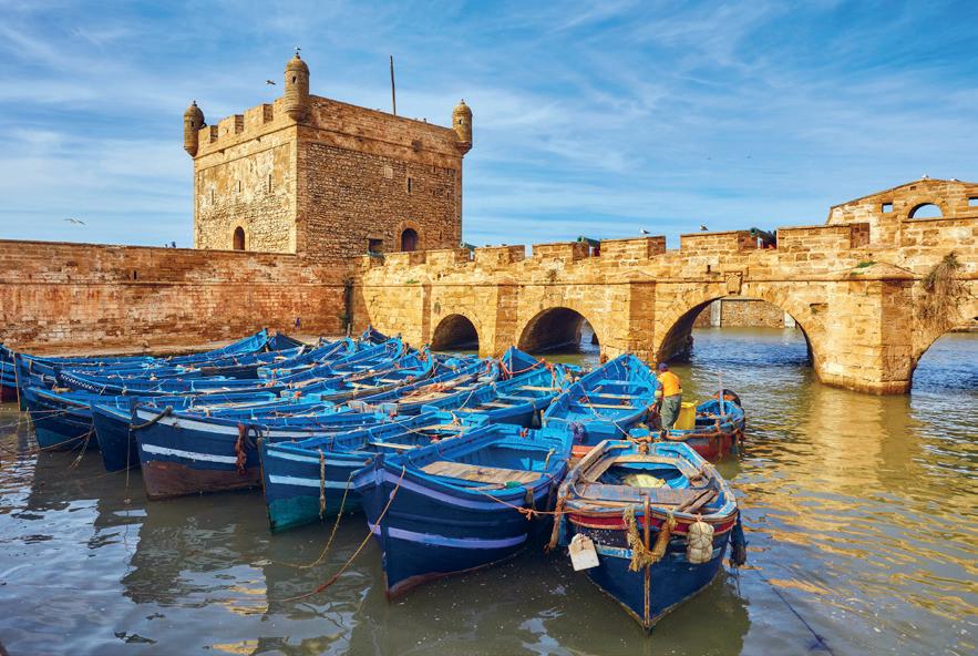mange blå fiskerbåde, gøre et kup i byens store medina og evt. tage med på en tilkøbstur med inkluderet frokost og vinsmagning, inden vi flyver hjem fra Marrakech.