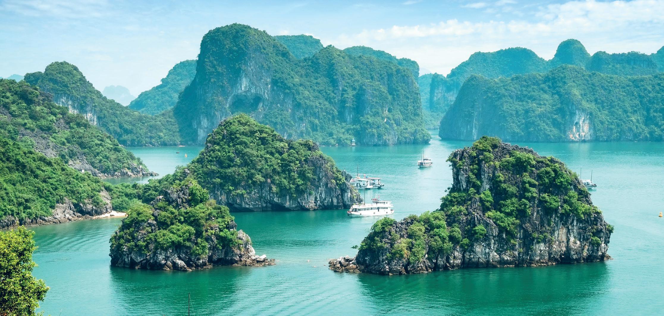 Vietnam på hjul, til fods og i båd For at få det bedste med hjem fra Vietnam skifter vi flere gange transportmiddel, så vi kan komme helt ud i krogene til landets vigtigste attraktioner og bedst gemte hemmeligheder. I Hoi An og Hanoi kører vi med cykel og cykeltaxa gennem grønne rismarker og myldrende gader, mens vi i Halongbugten sejler på træskibscruise med overnatning ombord tæt på både klippegrotter og små laguner. Ved Cu Chi-tunnellerne får vi en rundtur og endda mulighed for at komme ned i selve tunnelerne. Og så bliver der fra bussen rig lejlighed til at nyde synet af maleriske risterrasser, frodig jungle og småsamfund på vores færd ned gennem det aflange land, hvor Ho Chi Minh City, kejserbyen Hué og Østens største flydende marked også er blandt oplevelserne.
