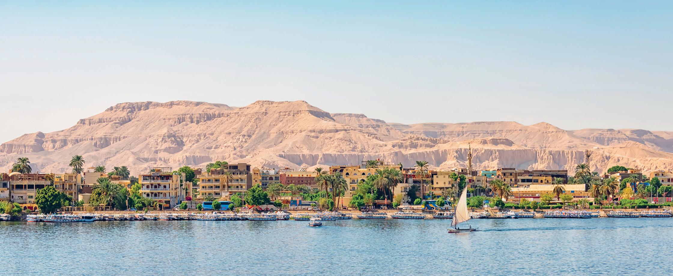 Fra Cairo til Kongernes Dal Rejsen begynder i Cairo, hvor vi bl.a. skal helt tæt på de enorme Giza-pyramider samt udforske byens fantastiske miks af basarer, kirker, moskéer, nordafrikansk leben og berømte museer som det længe ventede, nyåbnede og gigantiske Grand Egyptian Museum. Dernæst flyver vi til Luxor og går ombord på vores dejlige skib, der tager os på en fortryllende rejse ned ad Nilen. Vi skal bl.a. bruge en hel dag i Kongernes Dal, hvor vi ser Dronning Hatshepsuts tempel og de enorme Memnon-kolosser, og herefter kommer højdepunkter som det dobbelte Kom Ombo-tempel, en sejltur i felucca-både og Aswan-dæmningen som perlerne på dronning Nefertitis halskæde.
