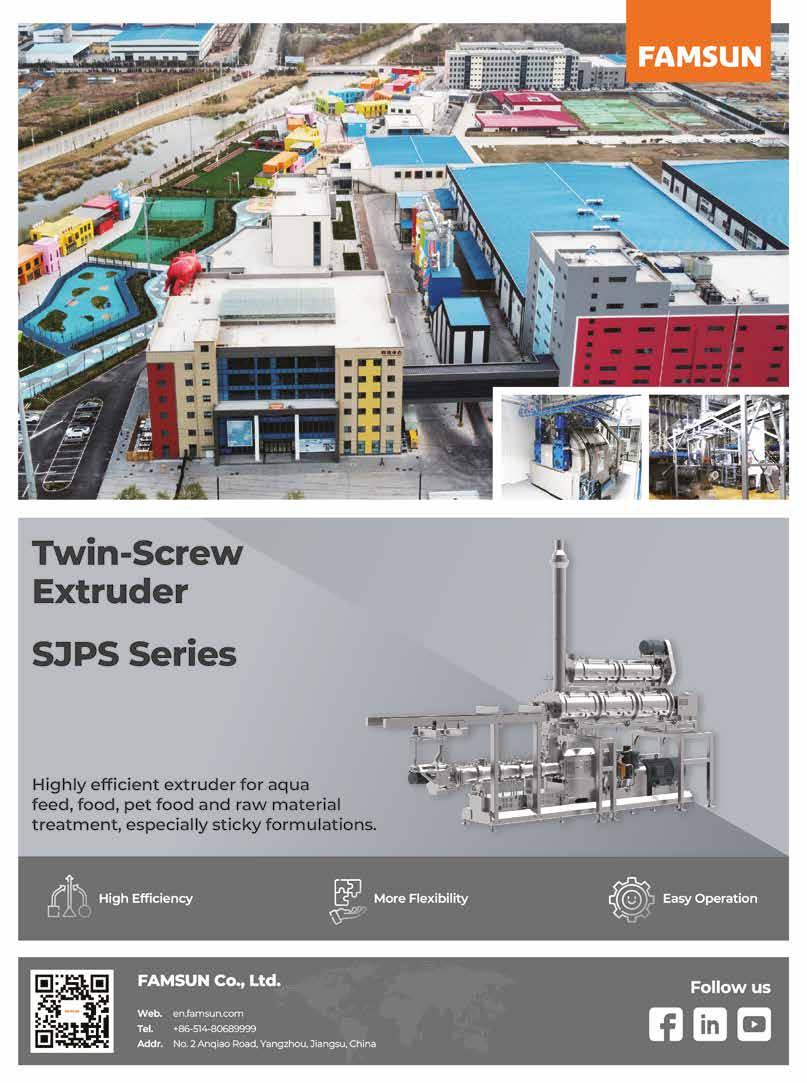 FAMSUN Co., Ltd., headquartered in Yangzhou, Jiangsu Province, China, has established itself as a leading global provider of food and feed engineering solutions. The company offers a comprehensive portfolio of systems, equipment, and engineering projects spanning diverse sectors, including aquaculture feed, swine and poultry feed, ruminant feed, premixes, fermented feed, and pet food. These products are an integral part of the global farm-to-table value chain, contributing to sustainable and efficient food production.