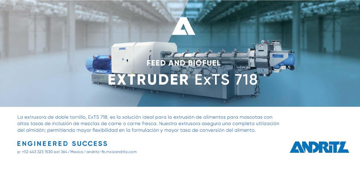 La extrusión ocupa un lugar central en la producción de alimentos para mascotas, pero no es lo único que importa: no tiene sentido centrarse exclusivamente en ella si no se logra un manejo preciso, pero integral, de los materiales e ingredientes en todo el proceso productivo. Es el método más común para producir alimentos secos para mascotas, e implica varias operaciones, como mezclar, calentar, amasar, cortar y dar forma. Aquí la clave está en la obtención de mezclas extremadamente homogéneas de los ingredientes utilizados en el proceso.