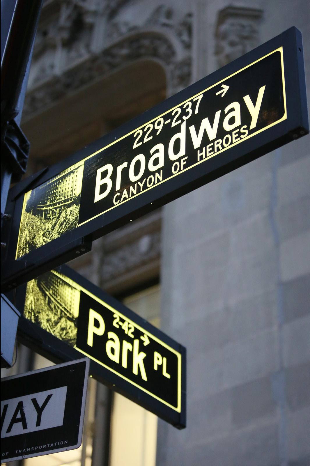 Starting in 1999, through the early aughts, the Alliance beautified 26 blocks via the Broadway Streetscape Program, adding and replacing fixtures including light posts, pedestrian ramps, bike and hydrant bollards and more. This $20 million program (made possible in part by a grant from the Lower Manhattan Development Corporation, funded through community development block grants from the U.S. Department of Housing and Urban Development) partially included replacing the old green-and-white street signs with distinctive black-and-white ones featuring images of the closest Lower Manhattan landmarks. Beyond aesthetics, we’ve also upgraded the street signs on main thoroughfares to be illuminated for improved visibility and wayfinding. Today, the Alliance maintains more than 900 pieces of fixed assets, including these signs, throughout the district.