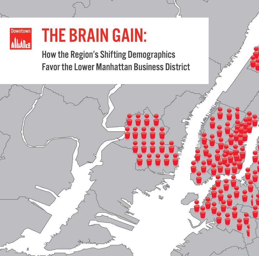 “The Brain Gain” report, highlighting Lower Manhattan’s strategic location in relation to new waves of professional workers in the neighborhood, as well as an influx of educated young and mid-career adults. Reports like these, including 2015’s “Surging Ahead: Lower Manhattan’s Economic Revival and What It Means for New York,” helped change the conversation around real estate in Lower Manhattan.