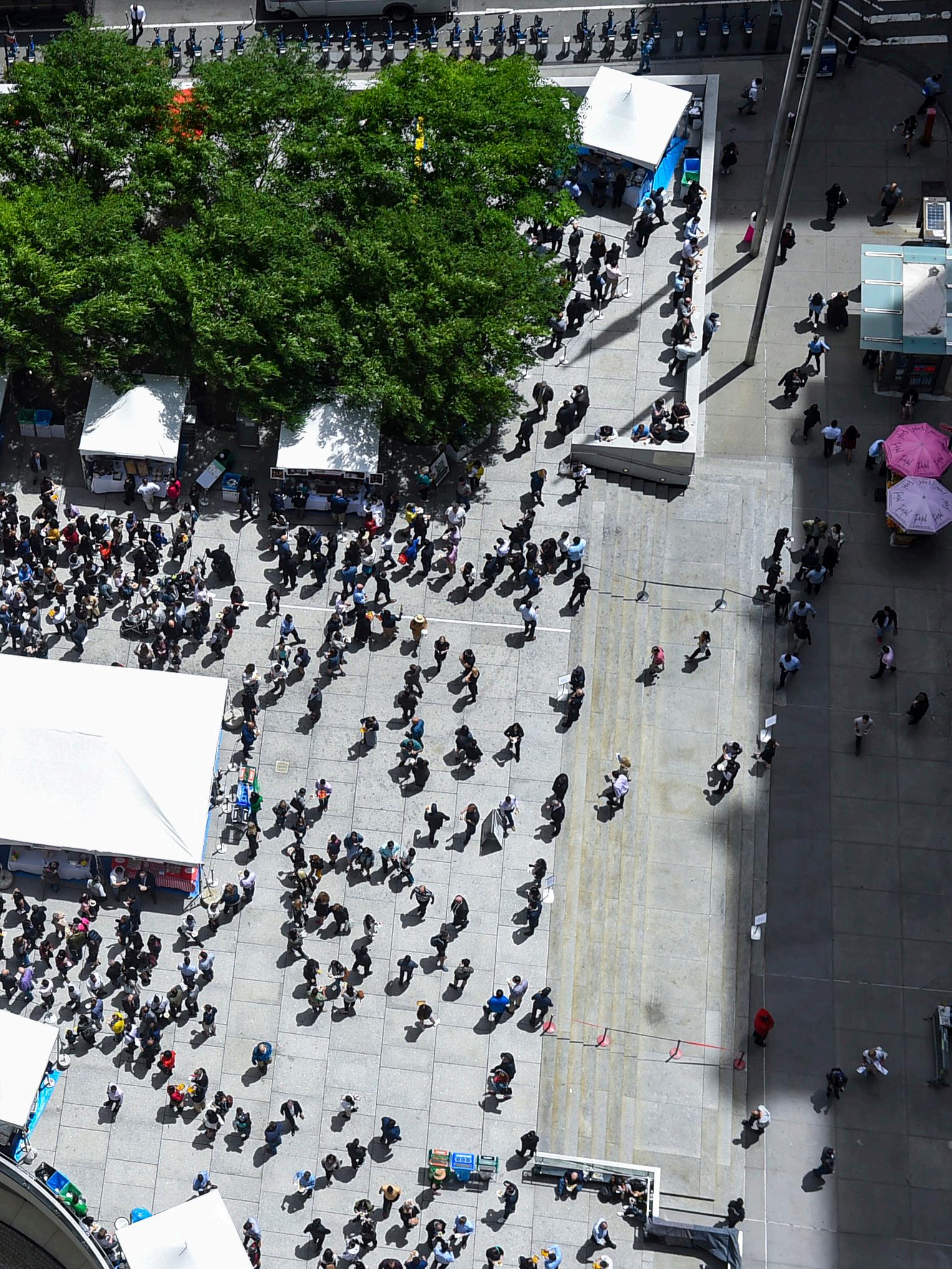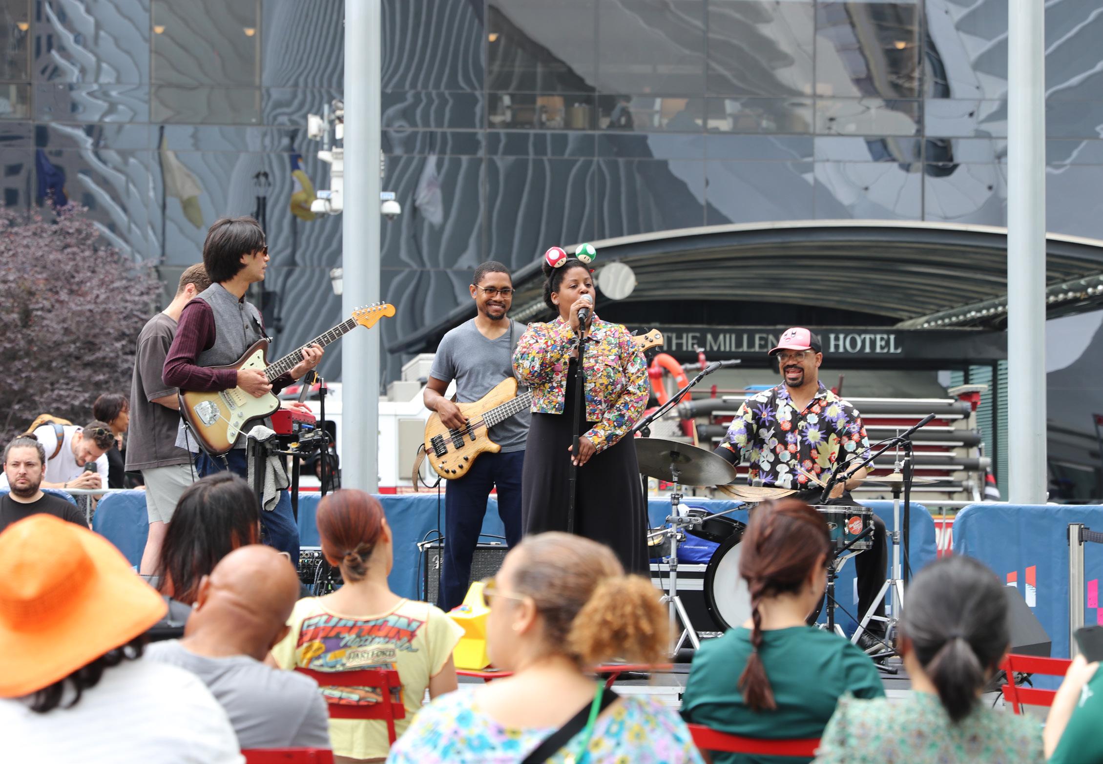 But as life changed during the pandemic, so did the neighborhood’s needs — and our economic development team realized the importance of richer engagement with the community at regular outdoor events. Since 2022, we have hosted a series of live outdoor concerts and performances annually in the district to encourage people to slow down and enjoy our public spaces during busy lunchtime and after work hours.