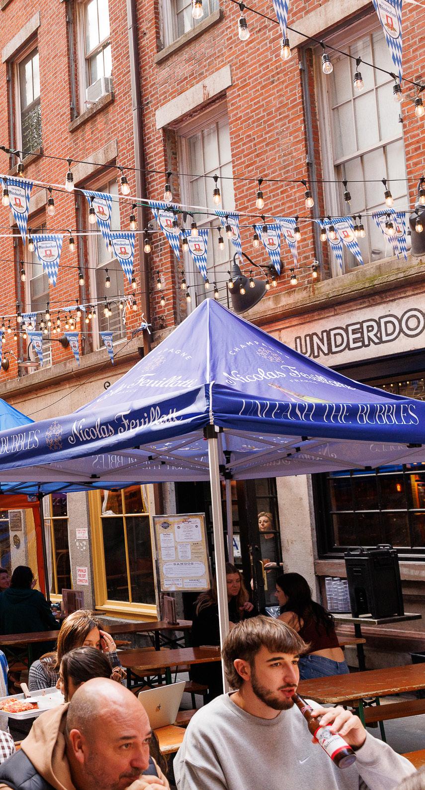 In 1658, Stone Street was New York’s first paved street. In 1996, it became a NYC historic landmark. Between these two milestones, however, the area had fallen into disrepair and was largely abandoned. Still, the Downtown Alliance saw its potential, and in 1996, we partnered with the Landmarks Preservation Commission to designate Stone Street as a historic district, a move that allowed the Commission to apply for federal funds to restore the street. We also teamed up with the city’s Department of Transportation and Department of Design and Construction to bring Stone Street back to life.