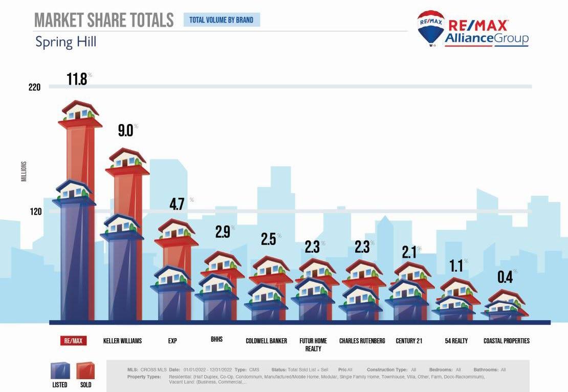 RE/MAX continues to dominate the local real estate market with more homes sold in 2022 than any other real estate company in the area.