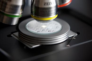 Examinations in the fields of research and industrial production (e.g. surface examinations of reflective, low-contrast specimens such as metallographic specimens and polished or textured wafers) require a fast focusing system that ensures high precision levels of max. 0.3 times the objective’s depth of field. This requirement can be easily met by combining your Axio Imager 2 with the Auto Focus system to benefit from fast and accurate focusing across a wide capture range of up to 12,000 µm. The Auto Focus system is designed to work with reflected light and transmitted light in brightfield, darkfield, polarized light and DIC.