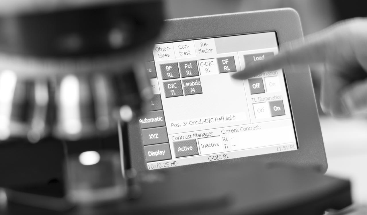 Choose from a variety of contrasting techniques to achieve an optimum image quality for your dedicated applications. Examine your samples in reflected light in brightfield, darkfield, Differential Interference Contrast (DIC), Circular Differential Interference Contrast (C-DIC), polarization or fluorescence contrast. For transmitted light you can choose between brightfield, darkfield, Differential Interference Contrast (DIC), polarization or circular polarization. Minimized stray light enables homogenous illumination. You achieve outstanding image contrast, even at high magnifications.