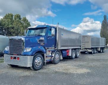 2015 Freightliner Argosy Alloy Bulky, DD15, 580hp, Roadranger, 770,000kms. 6.1m T&G alloy bin. 2015 T&G 5-axle trailer with 7.7m bin, SAF axles on air, disc brakes with grain & offal locks & Kiwi tarps.
