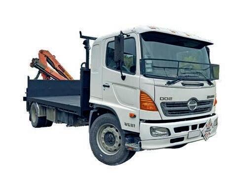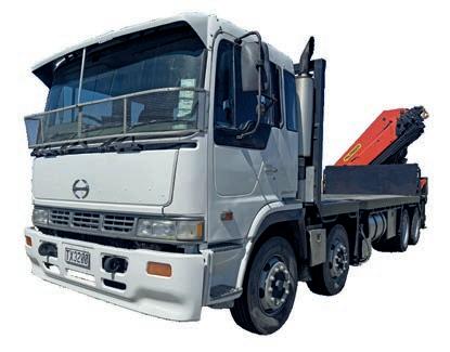 1996 Hino FY Crane Truck, 380hp, 13 spd box, Palfinger PK35000F, 6560kg at 4.6m, max reach 21.4m at 810kg, wireless remote, 6.5 m deck with twistlocks.