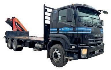 6X4 FLATDECK / CRANE TRUCK / WATER CART, 9 Speed Manual, single clutch operation, UNIC 12.11 Meter Front mounted crane, 3 tonne lift, lift scales, dual controls, 6.5 Meter long Towler engineering deck.