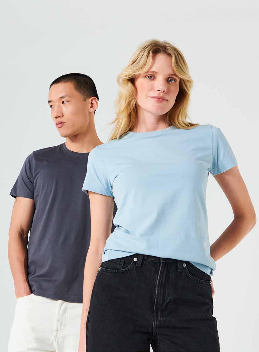 T-shirt in Cotone Organico. Tessuto pre-ristretto con trattamento enzimatico. Nastrino parasudore. Colletto elasticizzato e rinforzato. Struttura tubolare indeformabile per uomo. Versione donna sciancrata con cuciture laterali.