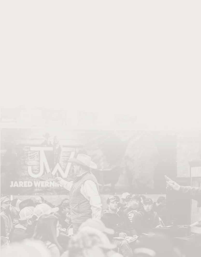 On behalf of my wife Kassi & myself, it’s our privilege to welcome you to our 4th Annual JWC Production Sale. Yes, you read that rightshe said yes & we were blessed with a perfect wedding surrounded by our favorite people this past October! Marriage is a blessing & we are so excited for what’s yet to come! As I sit here, we can’t help but pause & reflect on how humbled we are you’re reading this & considering us as your seedstock destination. Nothing can replace or compare to the relationships we have with our customers. It’s fun to work with you all as we strive to assist your programs efficiency & profitability with long term success in mind. 2025 has marked a record year for the beef industry & it has been fun seeing all your hard work, countless hours, & herd management practices pay off. With low cow numbers & high demand, the future is bright for American cattlemen! It has been fun seeing our customers sell this fall & winter with incredible weights & top-dollar premiums. Hats off to you - selecting seedstock with quality & performance is paying off like never before.