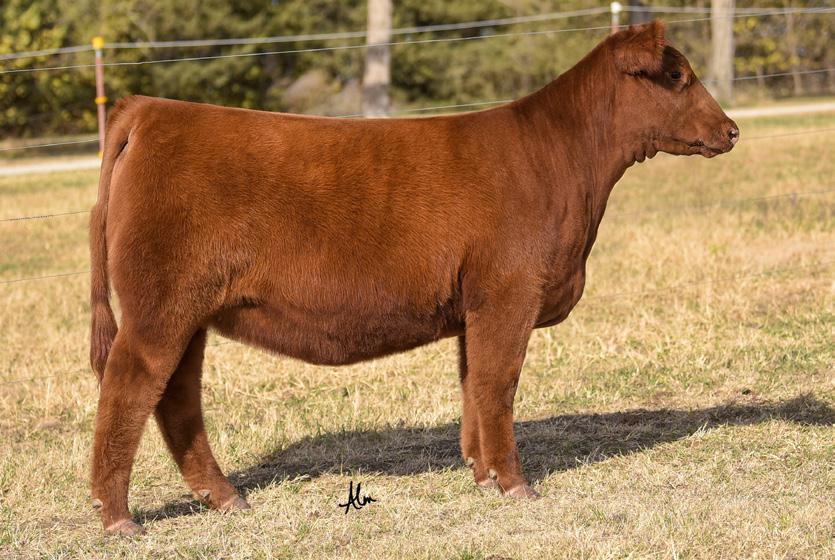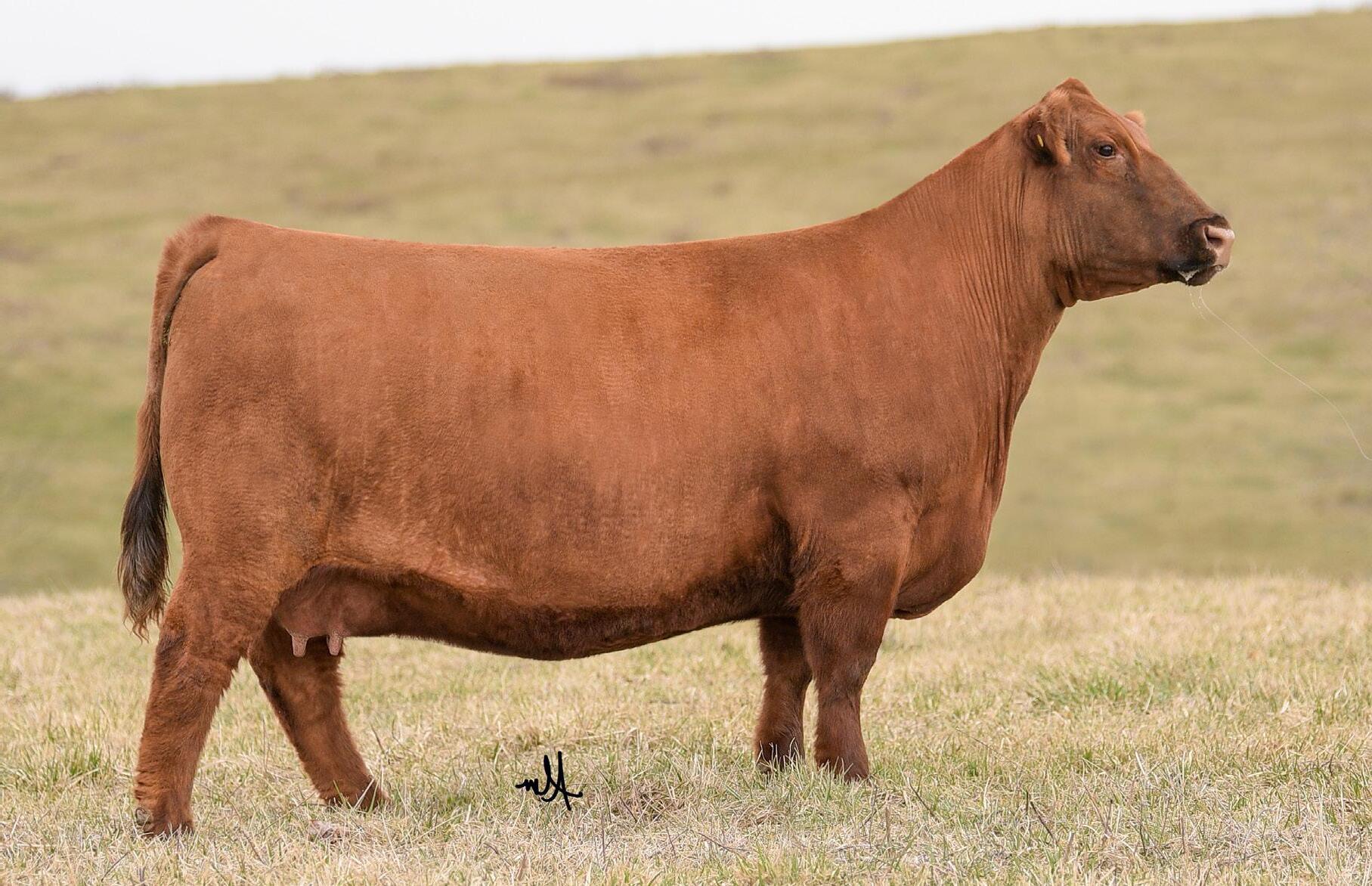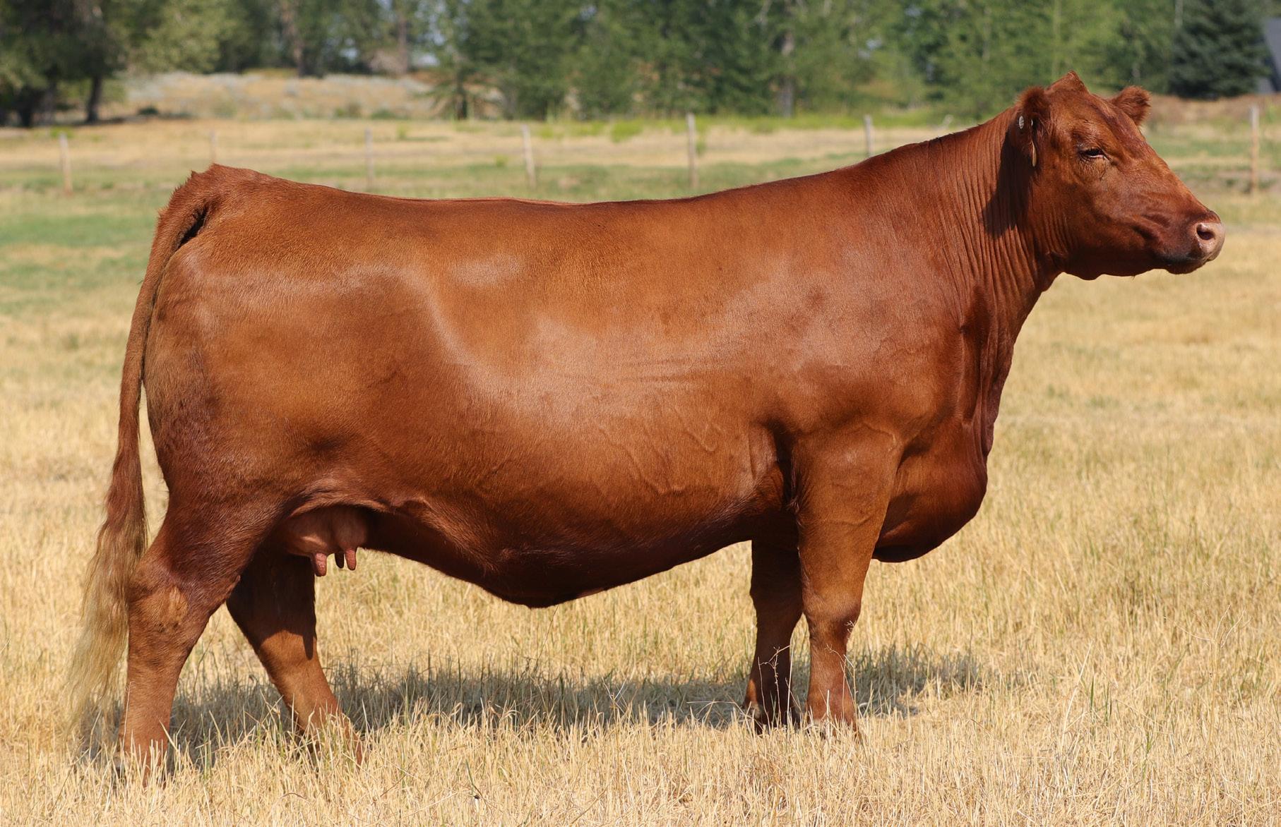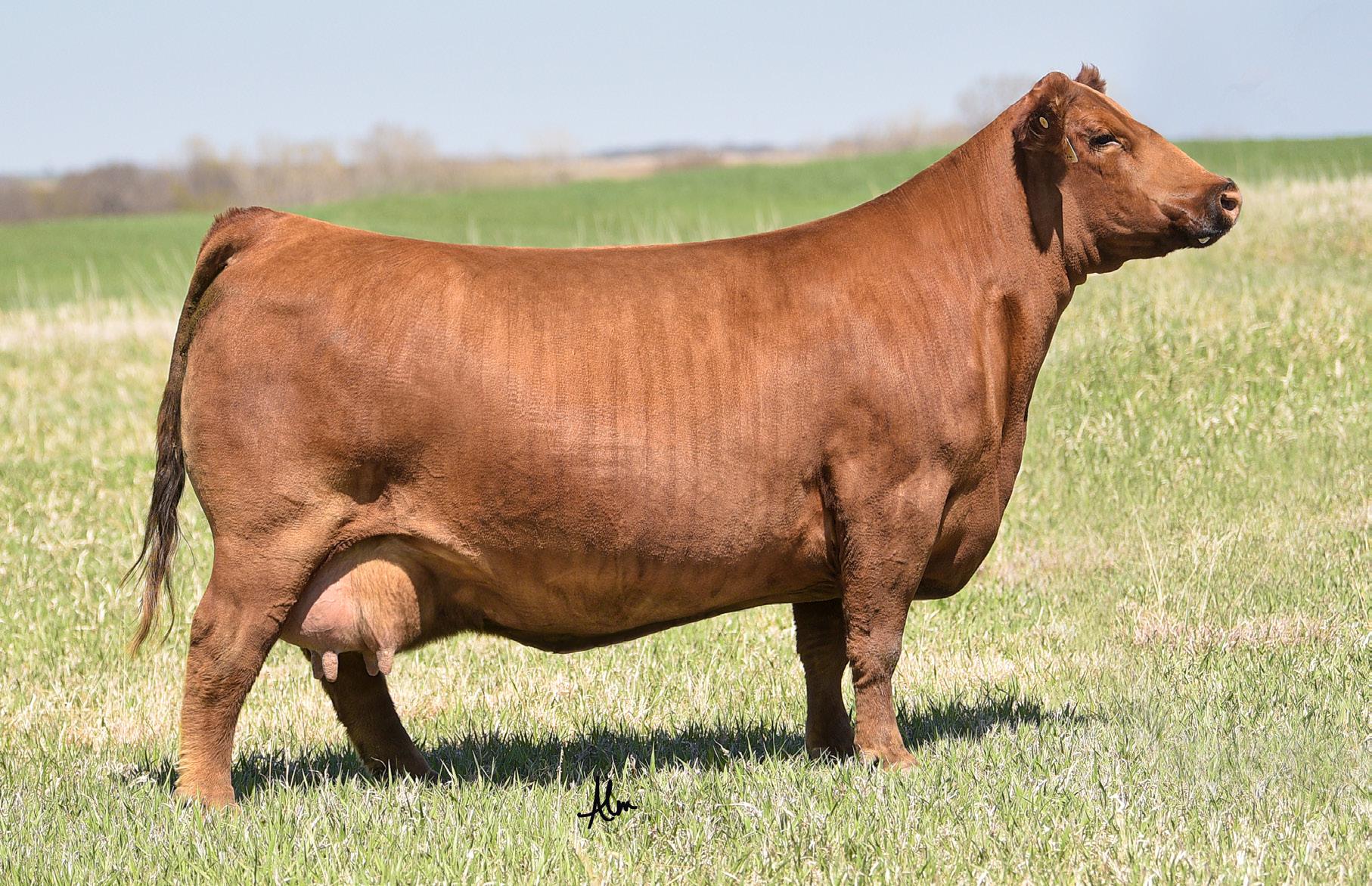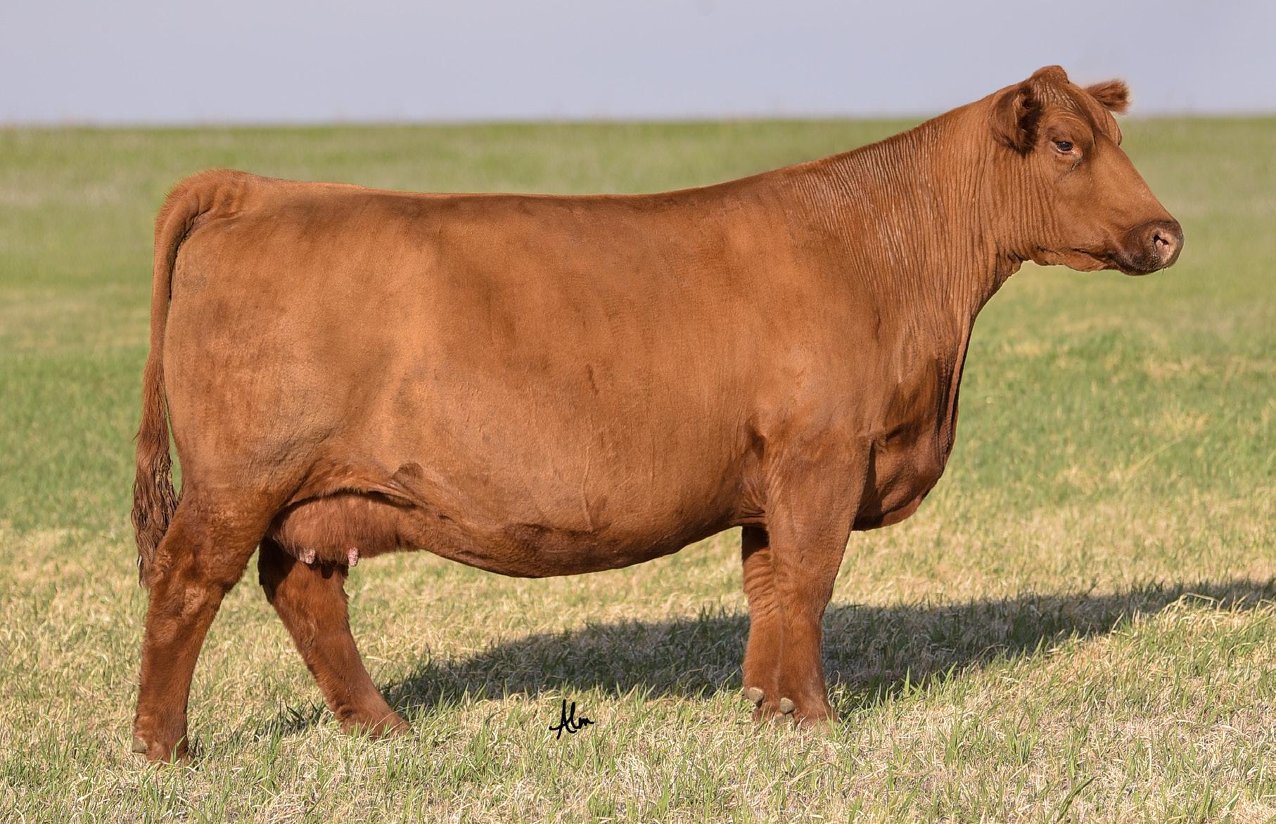 I have yet to have somebody come through that hasn’t immediately asked what this freak of nature is. An aboslute powerhouse, weighing 2300, she’d scare the dickens out of the cast of Little People Big World. In her short time here, has been highly productive, with several replacements kept back, and embryos in the tank, we feel comfortable offering her, or partnering with a like minded progressive breeder wanting to inject something different for the red breed. Talk about pedigree candy, this absolute tank of a Black-Red Carrier sports the most unique pedigree we’ve encountered within her respective breed. She’s a total beast, and exemplifies the image in your head when you hear the term “Donor”. This massive footed, incredible legged donor is a daughter of the ever popular Angus Sire, Dameron First Class, who’s semen currently garners north of $15,000 per straw. Her dam is a full sibling to Firestorm, the bull who brought a different type of Red Angus into the marketplace. She’s as stout featured, and high performing of a Red Angus influenced female as I’ve set eyes on, yet still so soft and smooth in her angles and in the sweep to her body cavity, with presence to burn. She’s the dam of the $11,000 Red Box in our bull sale this spring, a $10,000 Bankroll in our fall born sale last spring that has done her fair share of winning, and a fall born Red that has been unbeaten in the Red Angus arena for Stetson Curtis and was the result of an embryo purchase. From the Cita cow family, and the Angus bull that changed one of the largest breeds in the country, this new donor is making a splash, and will be heard from for years to come, whether it be making Simmentals, Maine Angus, or Reds.