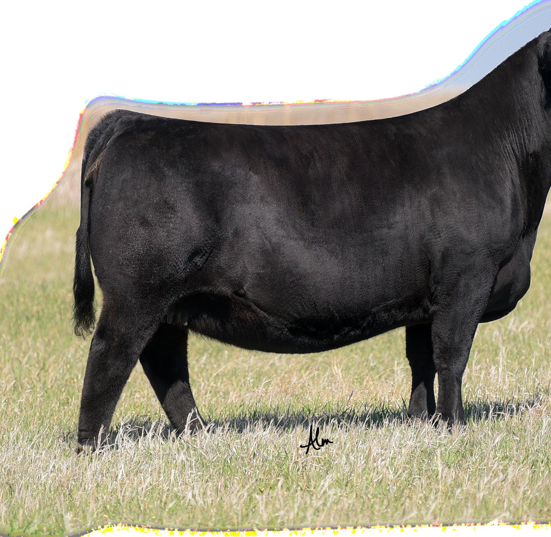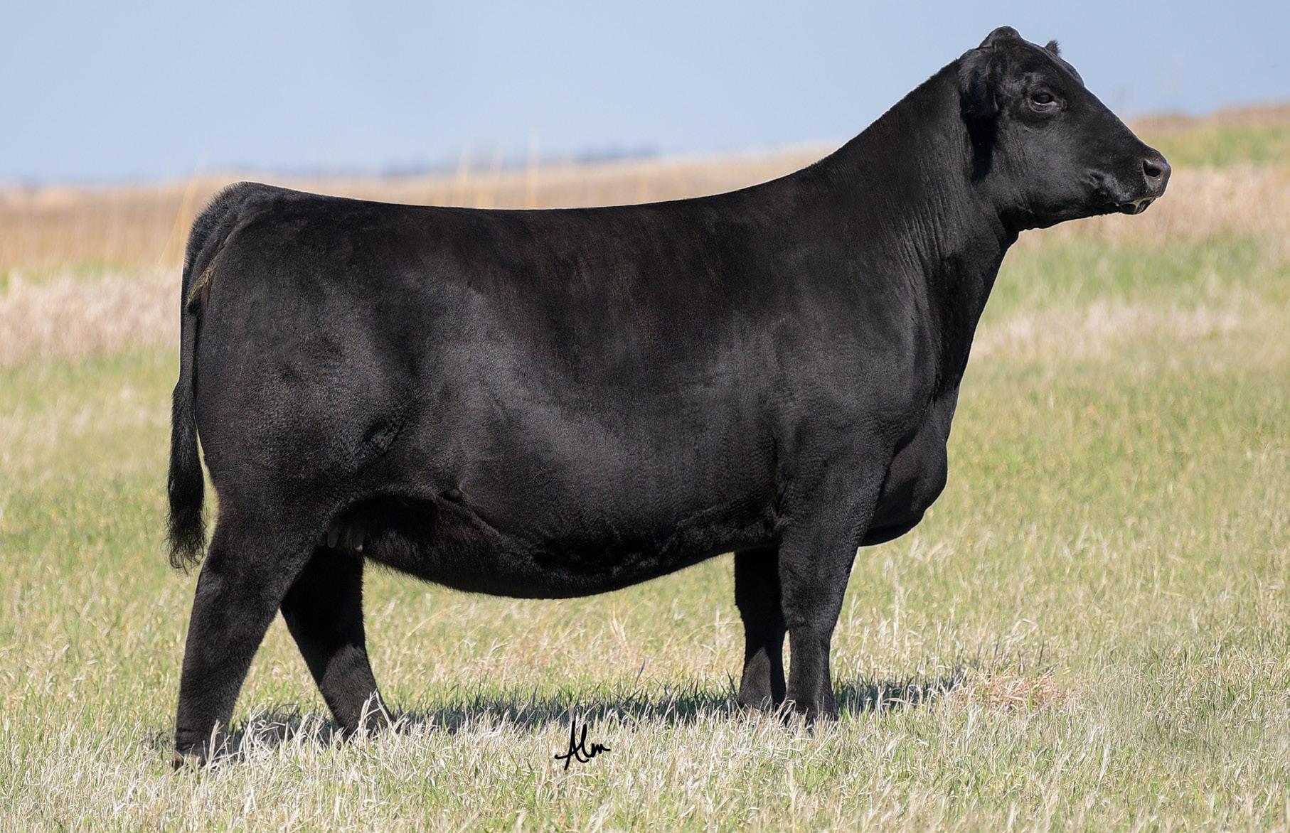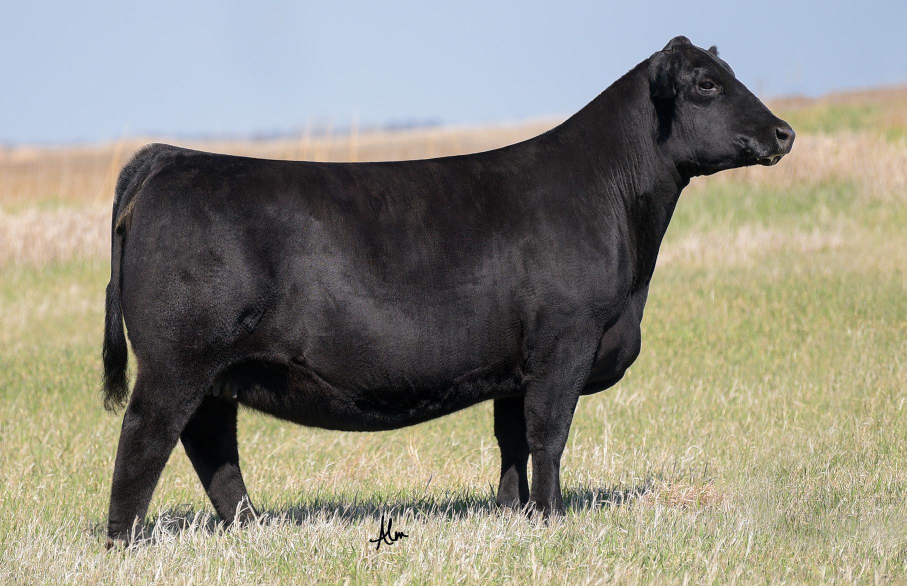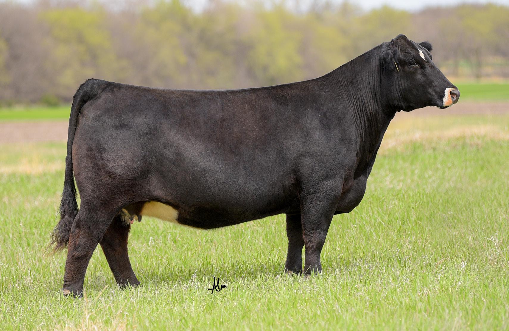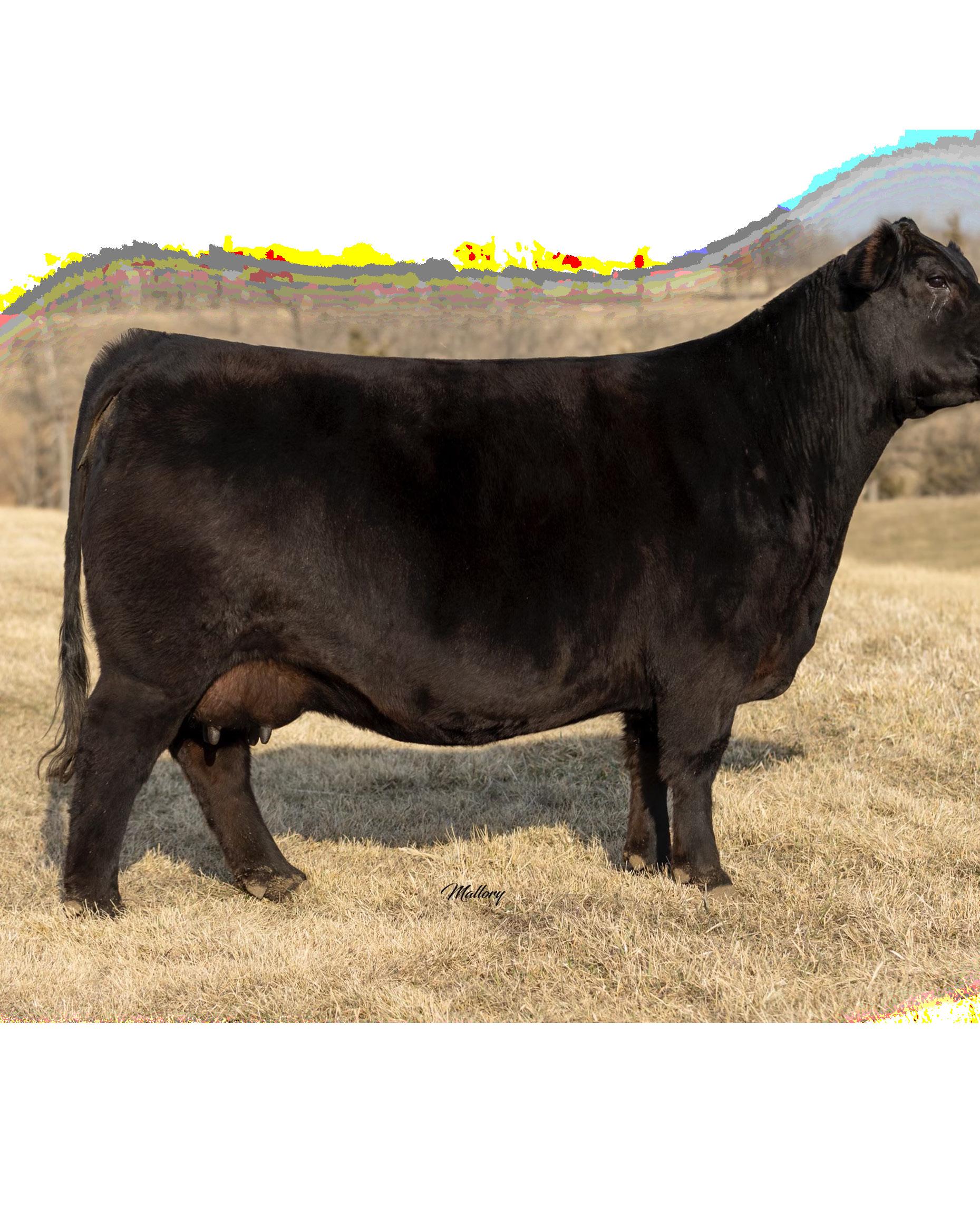 I’m willing to bet you stopped scrolling to look at this beast’s picture about as rapidly as I do a double take to look at her in the pasture every day. Unique, although often used and over-exaggerated, is the proper term to describe this tank. An absolute zoo creature, that if viewed in person, I think any cattleman could appreciate and enjoy. Monstrous footed, that are shaped how they should be, huge pinned and extremely pulled apart in her center skeleton, a neck a mile long, but giant bodied and displays added doability, with perfect teat structure. A true ‘Do it all” kind of cow. Despite how many loud features this cow brings to the table, potentially the most intriguing part, is the out of the box pedigree she sports. Sired by Double Black, the maternal phenom, and backed by a Century Impressive x Traveler 004 Donor that has been wildly productive for Johnson Corner Cattle. Her short track record has been impressive, with the majority of daughters retained, she’s the dam to MPJ’s $43,000 high seller, and many time champion this fall and winter, a $16,500 Primo daughter in the Major League sale, as well as a past Nebraska State Fair champion, and a $23,000 high seller for MPJ in 2021 l that had an awesome jackpot run, and was top 5 at Aksarben. The day Brian and Jordan Johnson called and agreed to let this one come aboard the Donor battery, I was doing fist pumps nonstop. The litter of progeny on the ground is sure to make a racket this fall, she passes on the exotic look, added punch, structural quality, and obnoxious hair quality. Latch on now, the opportunity to purchase genetics out of this absolute creature of a donor will be far and few in-between. owned with johnson corner cattle