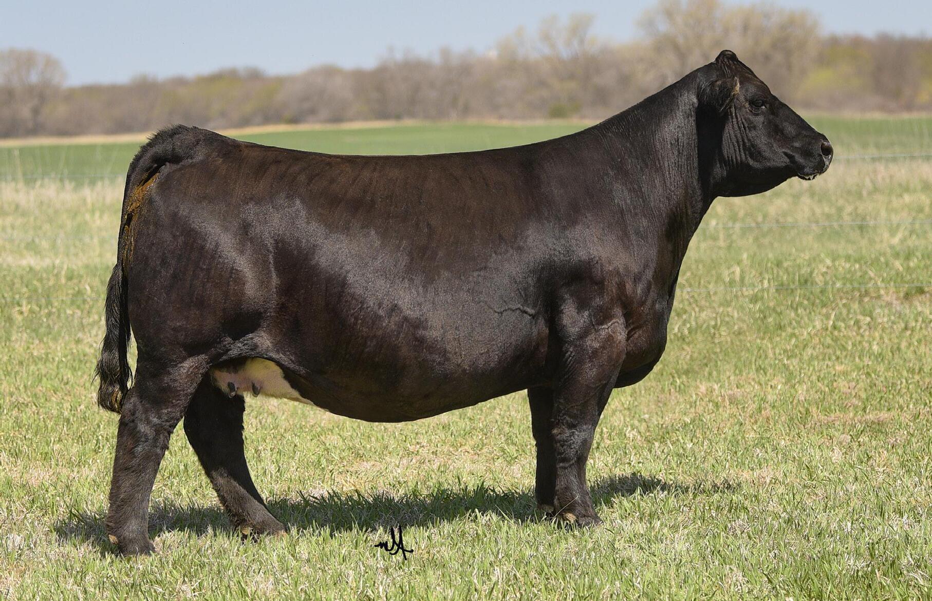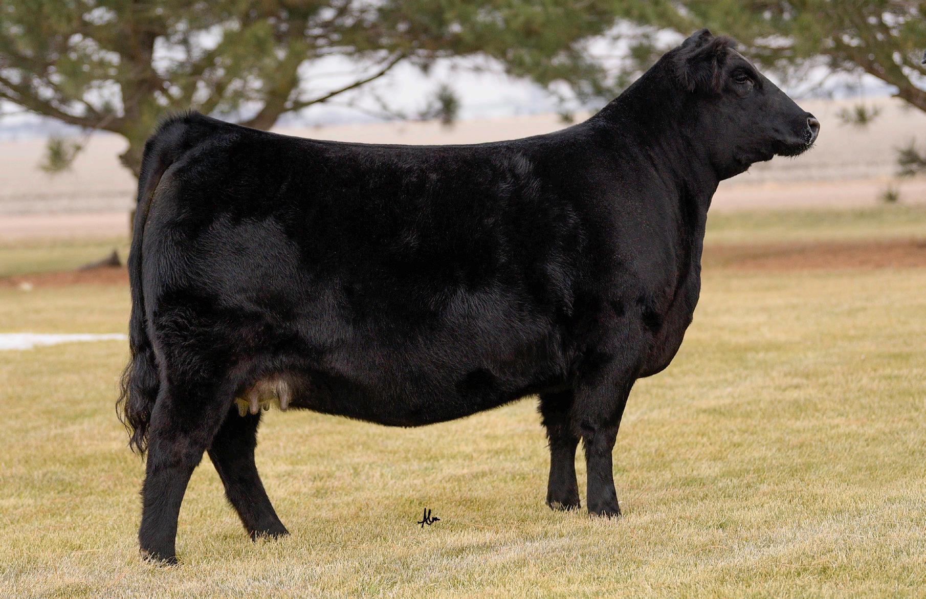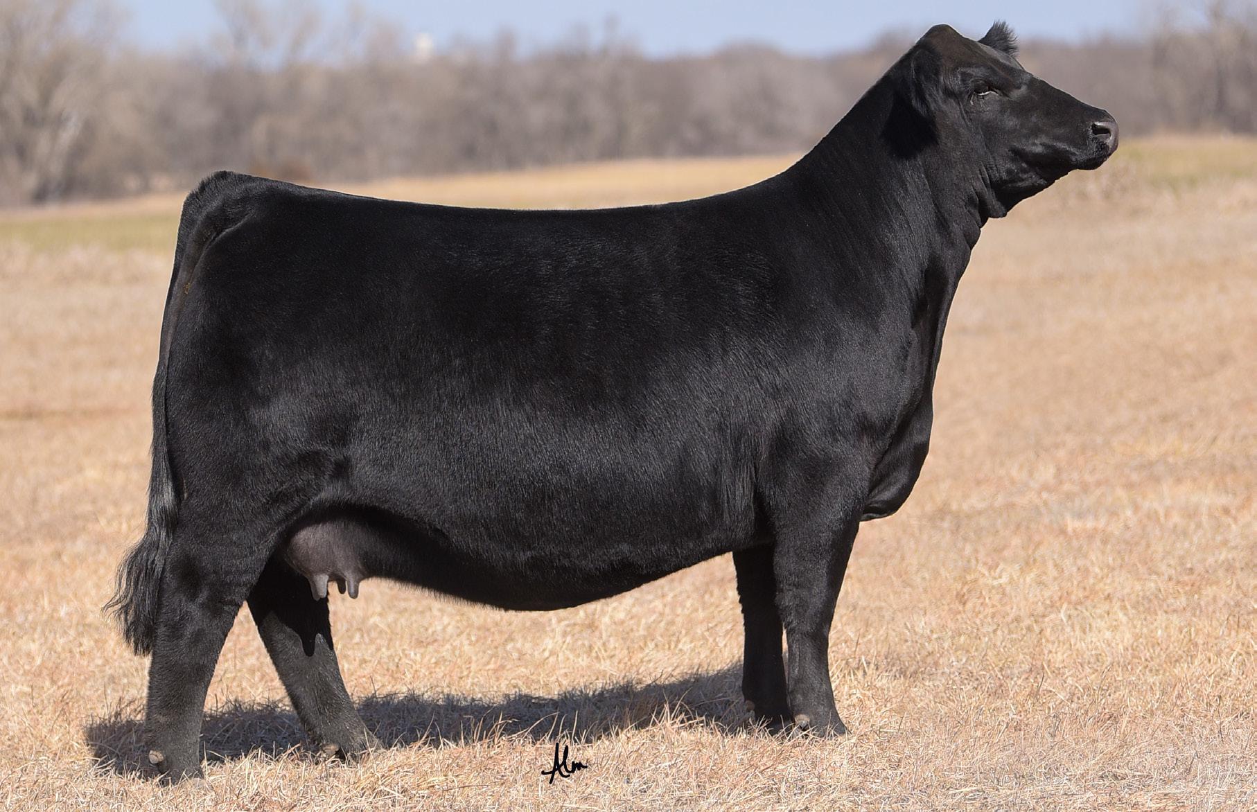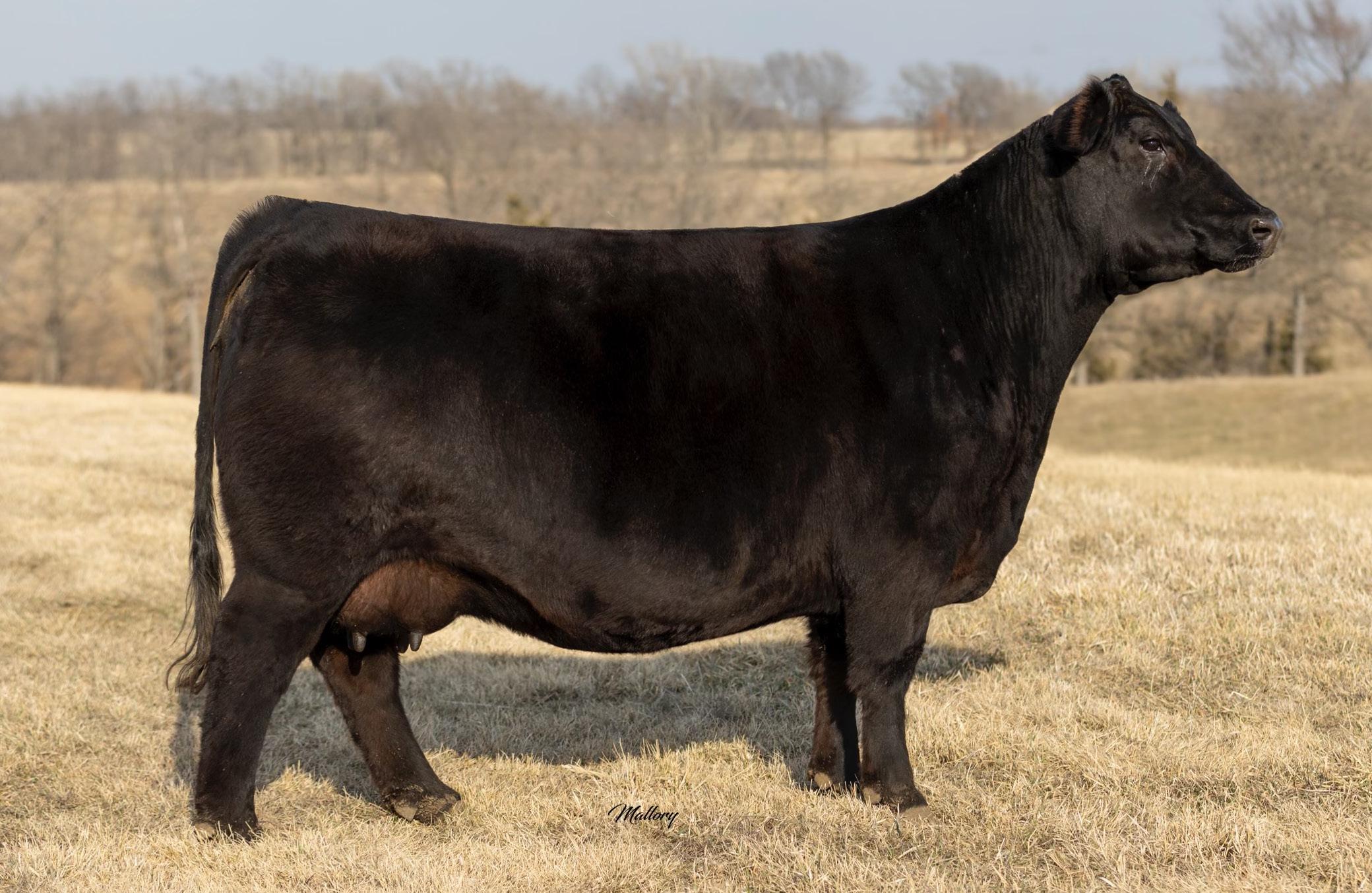 I’m willing to bet you stopped scrolling to look at this beast’s picture about as rapidly as I do a double take to look at her in the pasture every day. Unique, although often used and over-exaggerated, is the proper term to describe this tank. An absolute zoo creature, that if viewed in person, I think any cattleman could appreciate and enjoy. Monstrous footed, that are shaped how they should be, huge pinned and extremely pulled apart in her center skeleton, a neck a mile long, but giant bodied and displays added doability, with perfect teat structure. A true ‘Do it all” kind of cow. Despite how many loud features this cow brings to the table, potentially the most intriguing part, is the out of the box pedigree she sports. Sired by Double Black, the maternal phenom, and backed by a Century Impressive x Traveler 004 Donor that has been wildly productive for Johnson Corner Cattle. Her short track record has been impressive, with the majority of daughters retained, she’s the dam to MPJ’s $43,000 high seller, and many time champion this fall and winter, a $16,500 Primo daughter in the Major League sale, as well as a past Nebraska State Fair champion, and a $23,000 high seller for MPJ in 2021 l that had an awesome jackpot run, and was top 5 at Aksarben. The day Brian and Jordan Johnson called and agreed to let this one come aboard the Donor battery, I was doing fist pumps nonstop. The litter of progeny on the ground is sure to make a racket this fall, she passes on the exotic look, added punch, structural quality, and obnoxious hair quality. Latch on now, the opportunity to purchase genetics out of this absolute creature of a donor will be far and few in-between. owned with johnson corner cattle