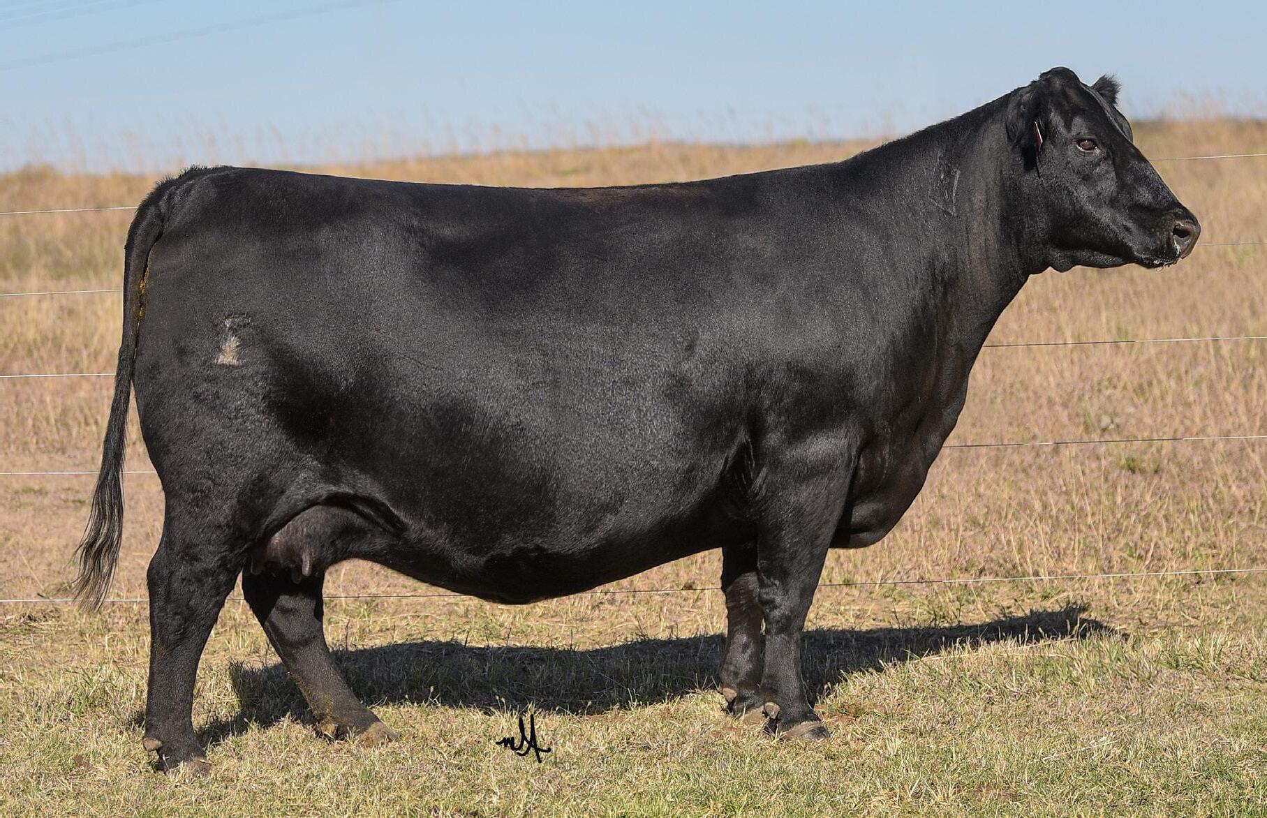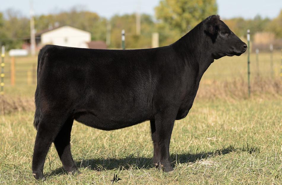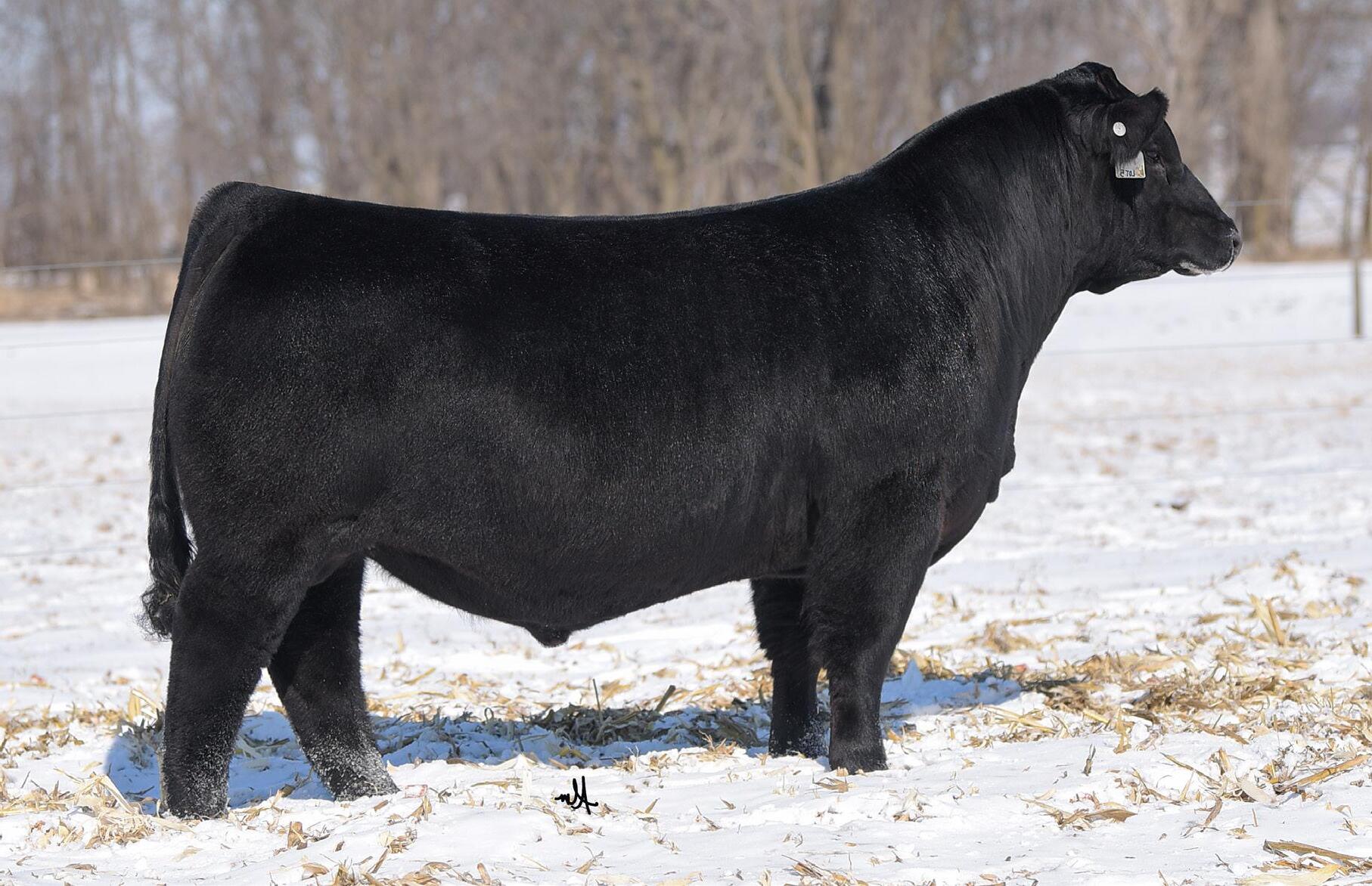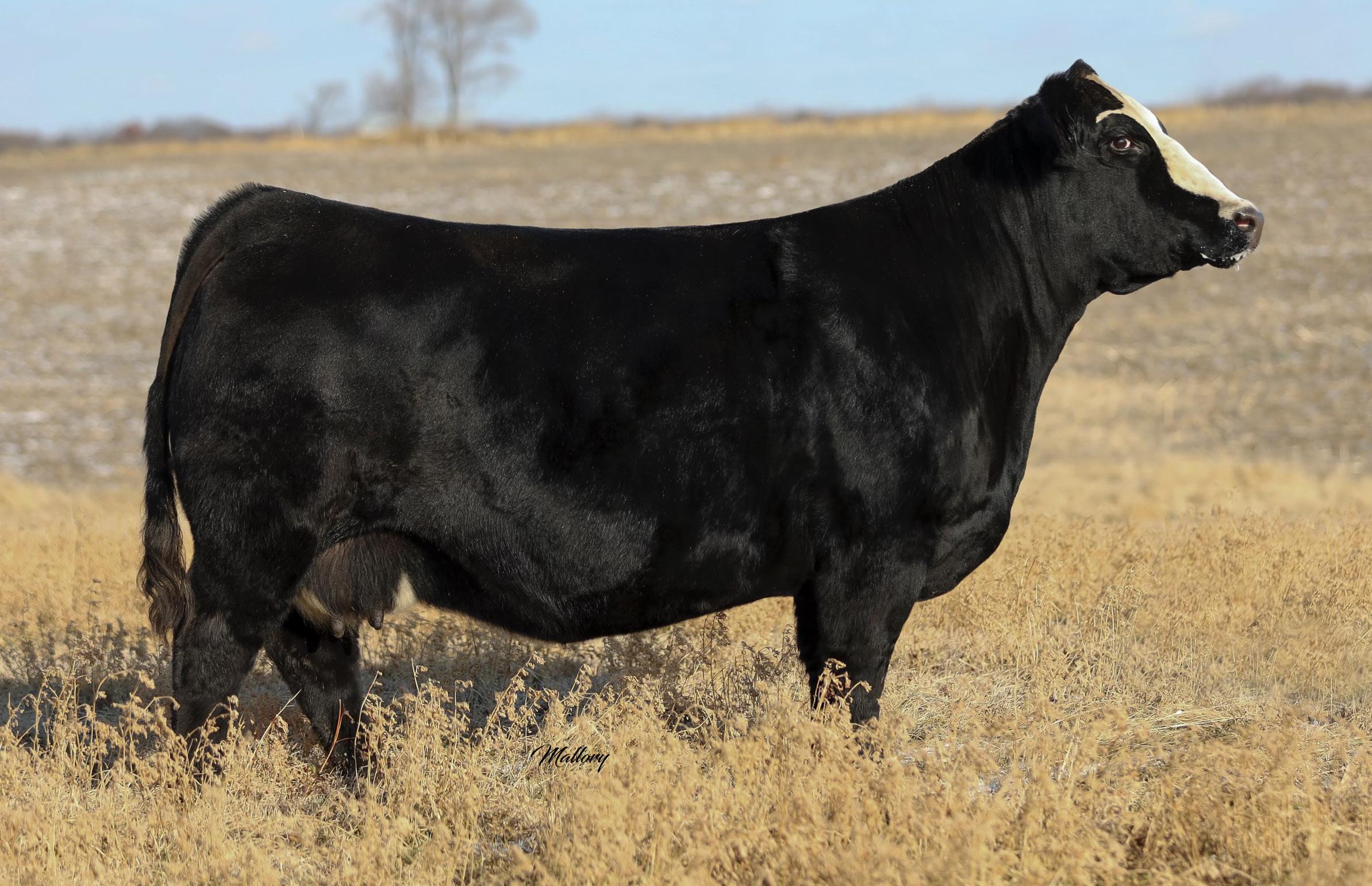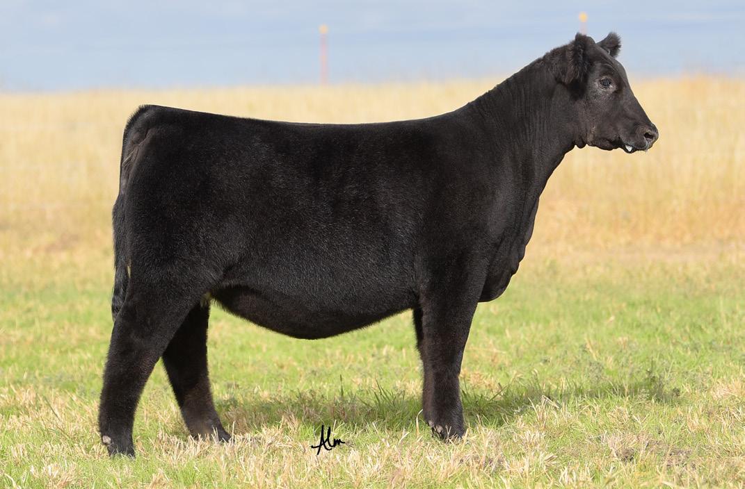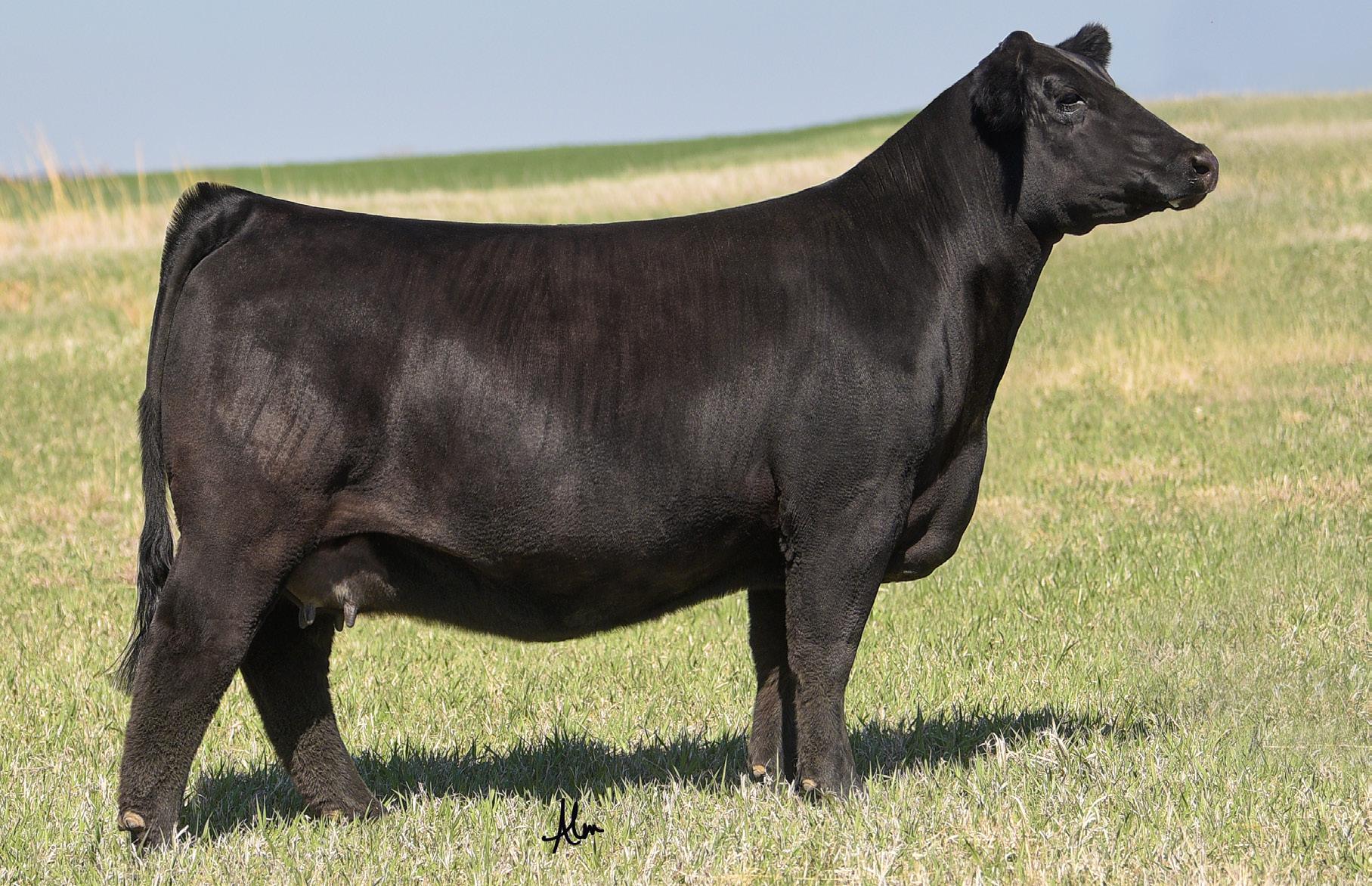 I’m willing to bet you stopped scrolling to look at this beast’s picture about as rapidly as I do a double take to look at her in the pasture every day. Unique, although often used and over-exaggerated, is the proper term to describe this tank. An absolute zoo creature, that if viewed in person, I think any cattleman could appreciate and enjoy. Monstrous footed, that are shaped how they should be, huge pinned and extremely pulled apart in her center skeleton, a neck a mile long, but giant bodied and displays added doability, with perfect teat structure. A true ‘Do it all” kind of cow. Despite how many loud features this cow brings to the table, potentially the most intriguing part, is the out of the box pedigree she sports. Sired by Double Black, the maternal phenom, and backed by a Century Impressive x Traveler 004 Donor that has been wildly productive for Johnson Corner Cattle. Her short track record has been impressive, with the majority of daughters retained, she’s the dam to MPJ’s $43,000 high seller, and many time champion this fall and winter, a $16,500 Primo daughter in the Major League sale, as well as a past Nebraska State Fair champion, and a $23,000 high seller for MPJ in 2021 l that had an awesome jackpot run, and was top 5 at Aksarben. The day Brian and Jordan Johnson called and agreed to let this one come aboard the Donor battery, I was doing fist pumps nonstop. The litter of progeny on the ground is sure to make a racket this fall, she passes on the exotic look, added punch, structural quality, and obnoxious hair quality. Latch on now, the opportunity to purchase genetics out of this absolute creature of a donor will be far and few in-between. owned with johnson corner cattle