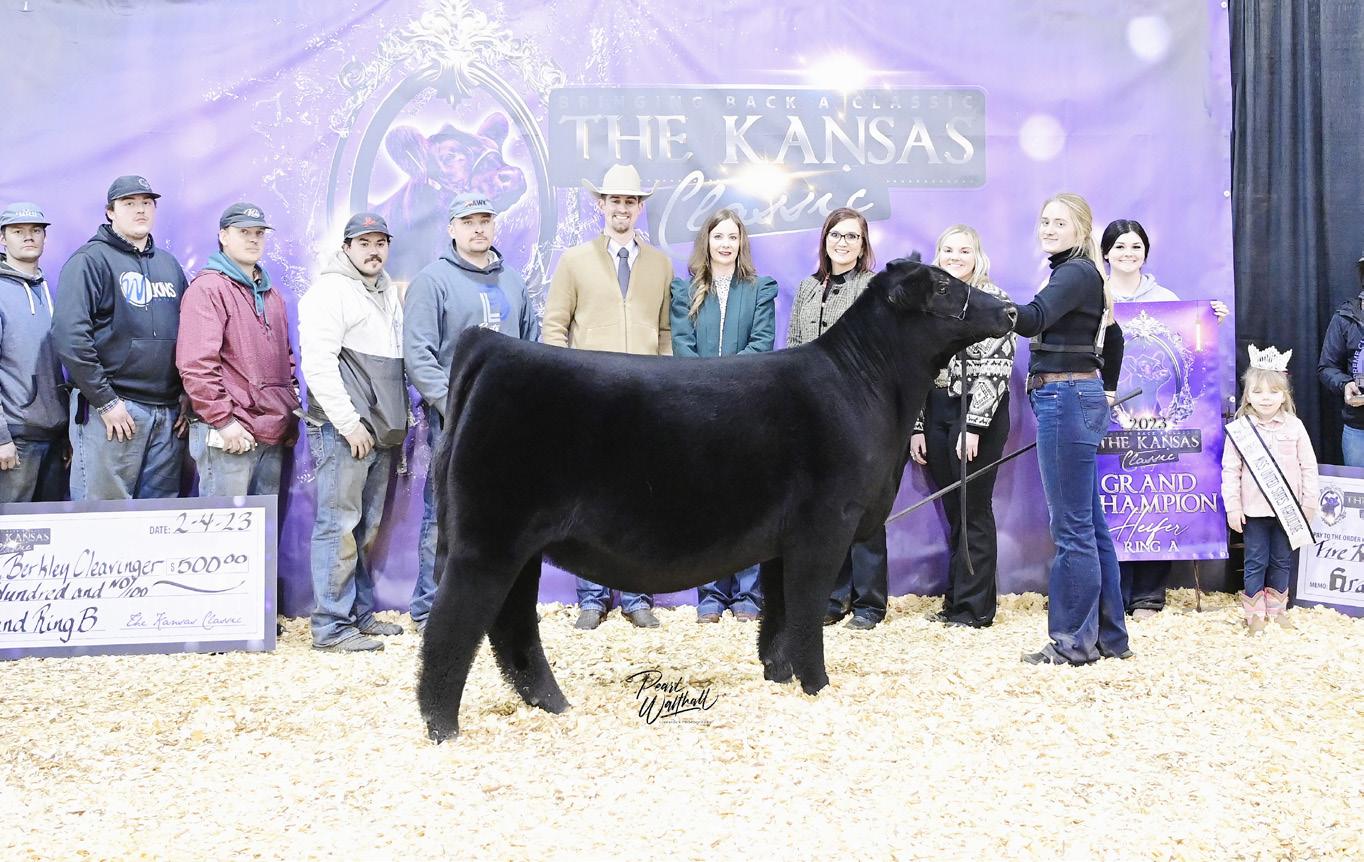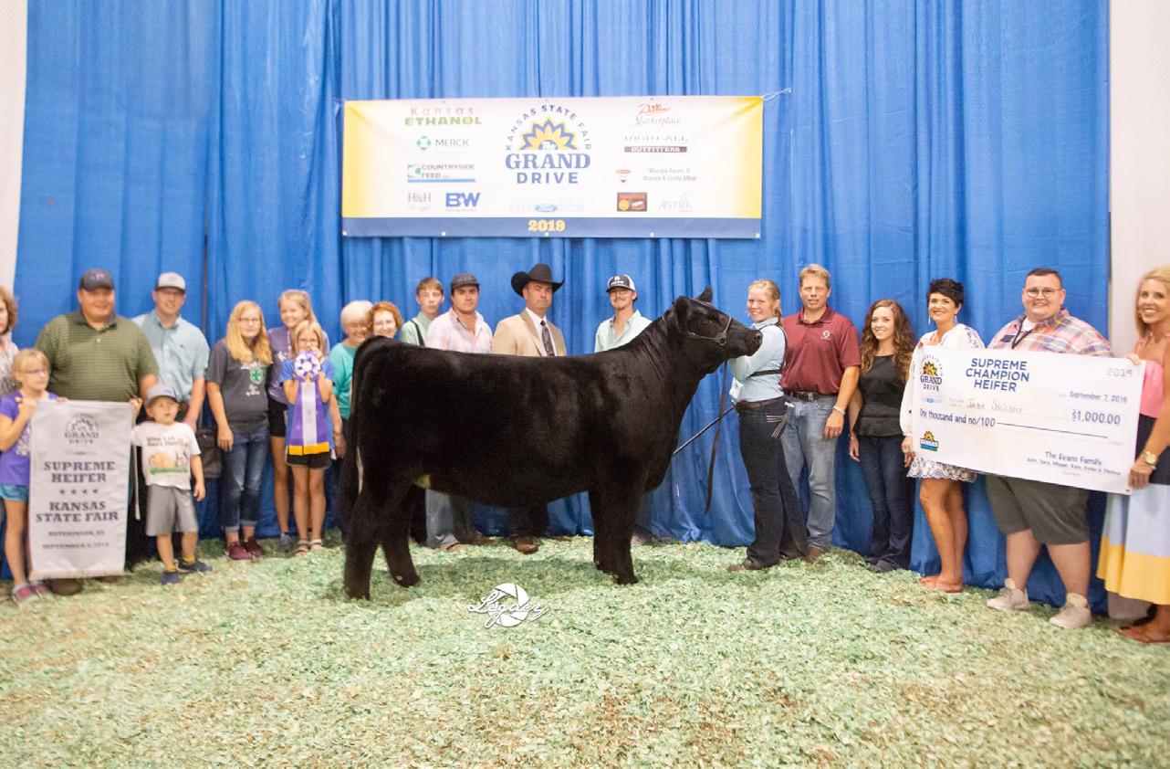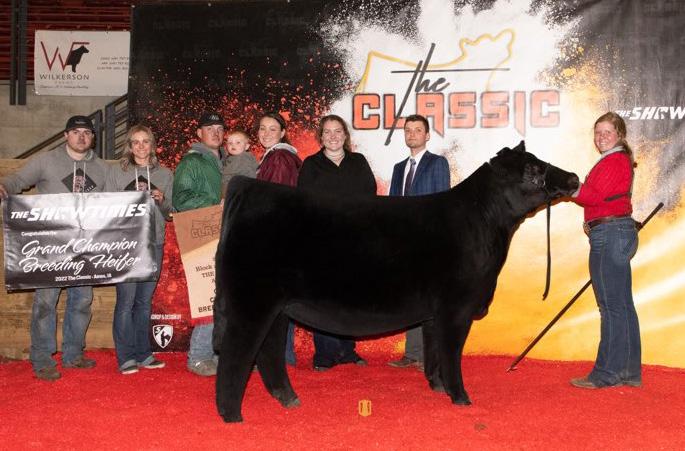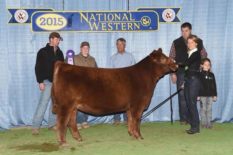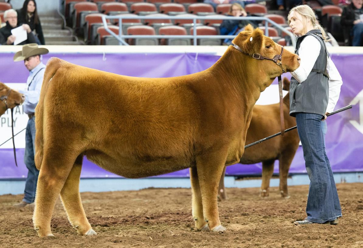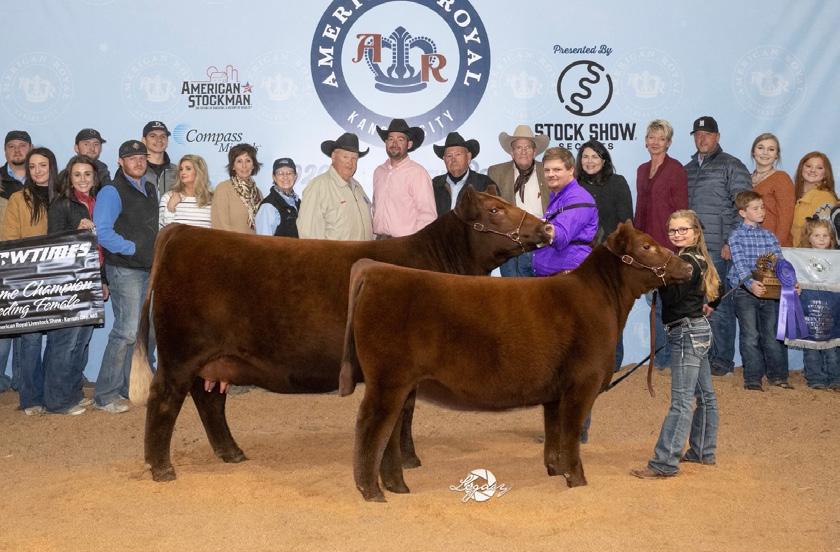18H had an incredible run from start to finish. Never being left out of the Top 5 from the get go, Jackie Sleichter found the Top 5 at Kansas Beef Expo, Nebraska AGR, Iowa AGR, Kansas State Fair, Aksarben, and was Reserve Purebred Simmental at the American Royal. She looks like a total unit in production, as you can see in the picture, and is raising a freak of an Encore bull calf at side. 18H stems back to the legendary Dreamy cow of Bailey’s, her mother a past high seller for Hartman, sale feature in a dispersal, and landed at Holtkamp and Bloomberg’s. A frame bigger than most Bankroll’s, 18H has always been absolutely monster bodied, loose structured, with an exquisite neck attchment and sleek front third. The comfort and flex to her spine has always been remarkable, and she could get out and go with the best in the breed. Her Tecumseh daughter on the ground this spring is sure to make a healthy number of friends come fall, and it would appear that her ability to generate will surpass her success in the ring even. We are excited for the upcoming years with this tank of a Purebred Simmi. owned with sleichter cattle company