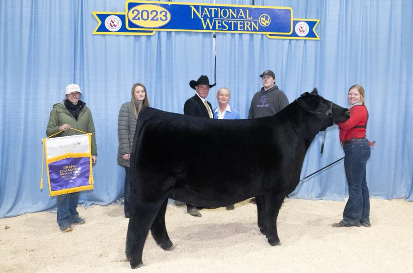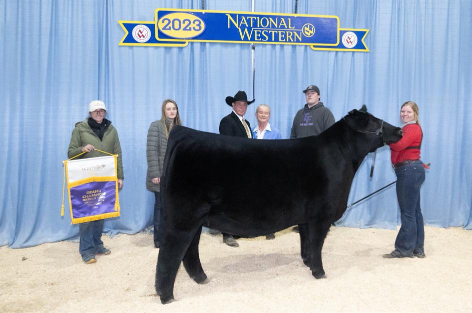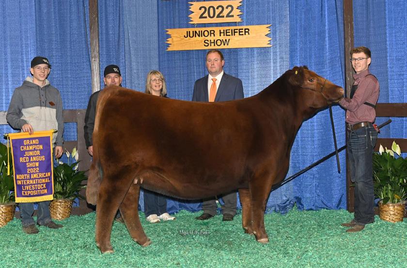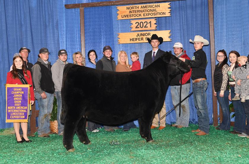 The queen herself. Rest assured, the opportunity for genetics out of 0204 will rarely be offered in frozen form moving forward. Her first set of E.T. calves look incredible, and she simply didn’t miss, both the bull calves and heifer calves look insanely promising at this stage, and there’s not doubt she stamps them with the same tough to find pieces. When I first set eyes on her at 3 months of age in Udell’s pasture, I’d never seen a baby angus with that much feature, bone, mass, and a flat-out addictive look. She went on an absolute terror for the Wheeler Family throughout both the Jackpot Season, and the Fall Majors, winning the Open Show at American Royal, both the Open and Junior Show at the NAILE, and Reserve in the Open Show at Cattlemen’s Congress; one of the few Angus to find honors at all three. One of the biggest boned, loosest constructed, robust bodied, dense and powerful Angus females I’ve ever seen. She carries that added mass and dimension in such an effortless fashion on such an ideal structural setup, it’s awe-inspiring. She arguably looks more impressive in production, the most important part, and has done an incredible job in the maternal department since calving 10 days after her backdrop picture in OKC. Her giant feet look incredible, she milks like they need to, and is very fertile. Get ready for one of the neatest structured, softest bodied, most dense boned Angus you’ve had born on the place. owned with wheeler angus