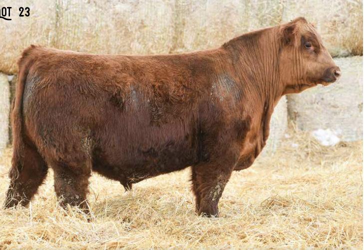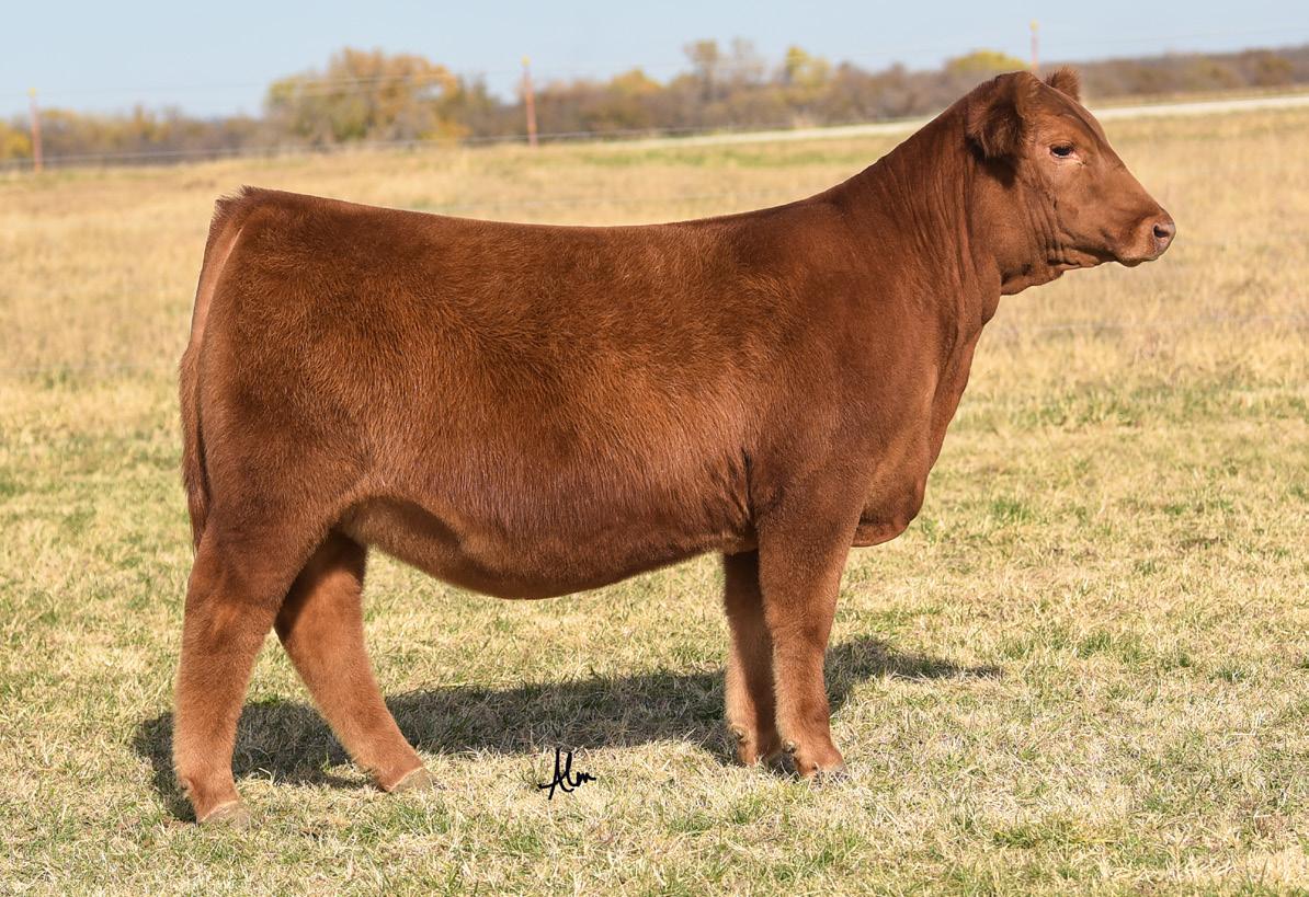 There’s no question regarding the dire need for feet and leg alteration in the Red Angus breed, hence the need to be Progressive with this John Wick son. Progressive 1179’s skeletal quality is absolutely incredible, his hind leg is what dreams are made of, dense boned with incredible reach and flex, square in the fashion he utilizes it, cushion to his pastern, but still deep heeled with a perfect toe. He’s striking and tall fronted, but still short shouldered with the ideal angle in his shoulder and lower joints, and strides on perfect, dark feet. Big backed, bold and shapely in his long muscle pattern, with added hair quality before getting slicked off. A long spined, flexible Red Angus that’s robust in both his upper, and lower rib cage, and still balances with a tucked chest floor and collected front third. His mother hasn’t missed, with multiple high selling daughters for Niobrara Red Angus, his full sister was a $20,000 high seller in Reds on the Rise a few falls ago, a full brother brought 12,500 last year and is a promotional sire for JVM and Colby Lind. If you want to inject a mouthwatering structural setup, ideal foot shape, added cow power, and one of the most sought after Red Angus Sires in North America, John Wick, then latch on to 1179. You hear it all the time, and it’s written on every advertisement, but Progressive is truly a game changer within his respective breed. His first calf croup, limited as it may be, is everything we’d hoped, he’s stamping them with his sexy build and practicality on a smooth design, all with very modest birth weights.