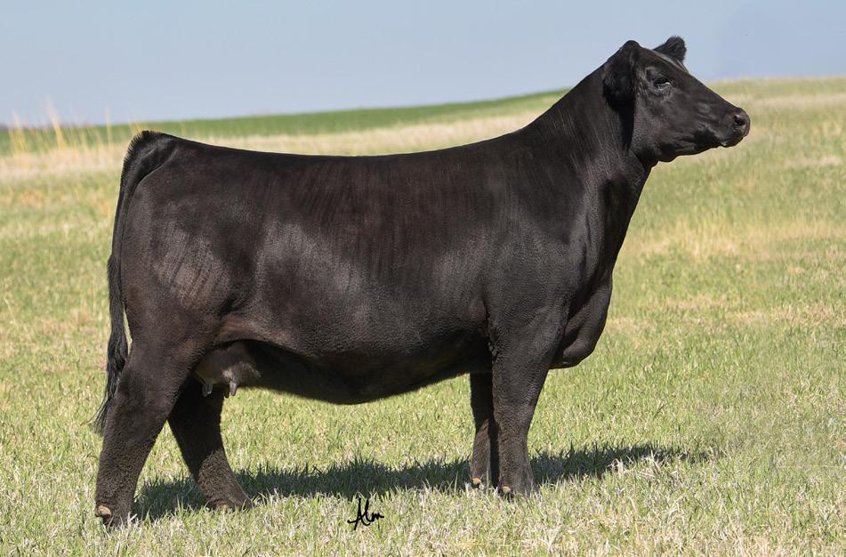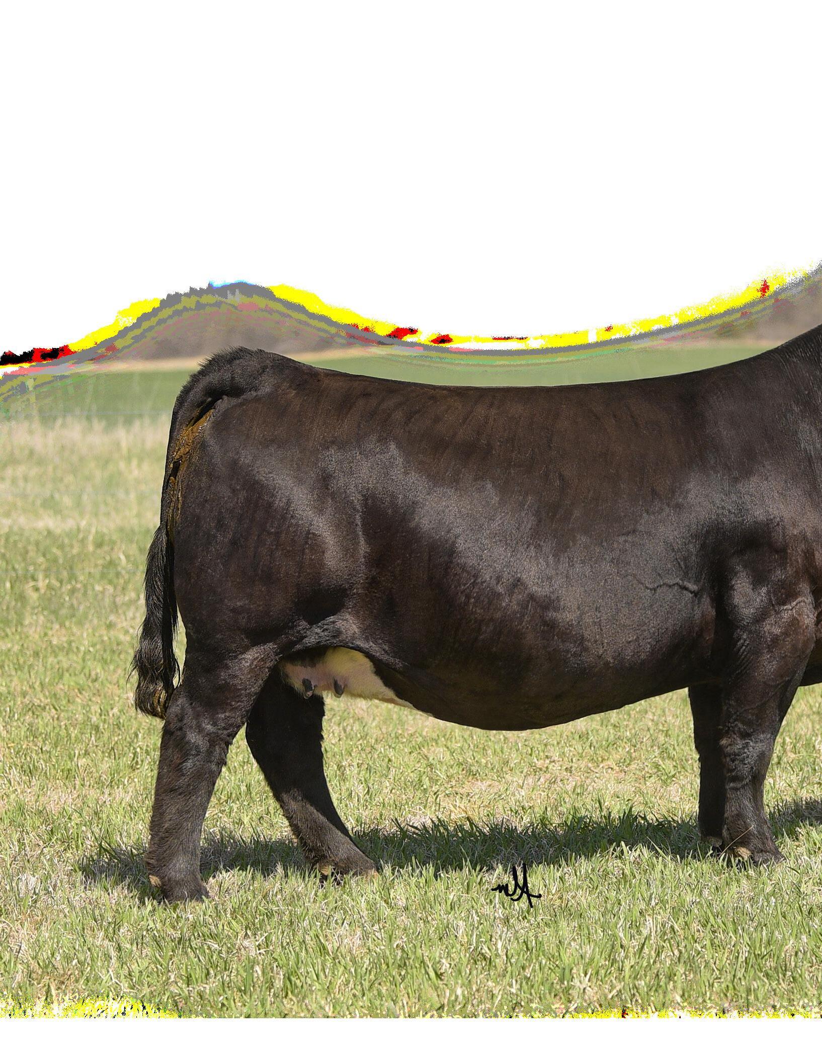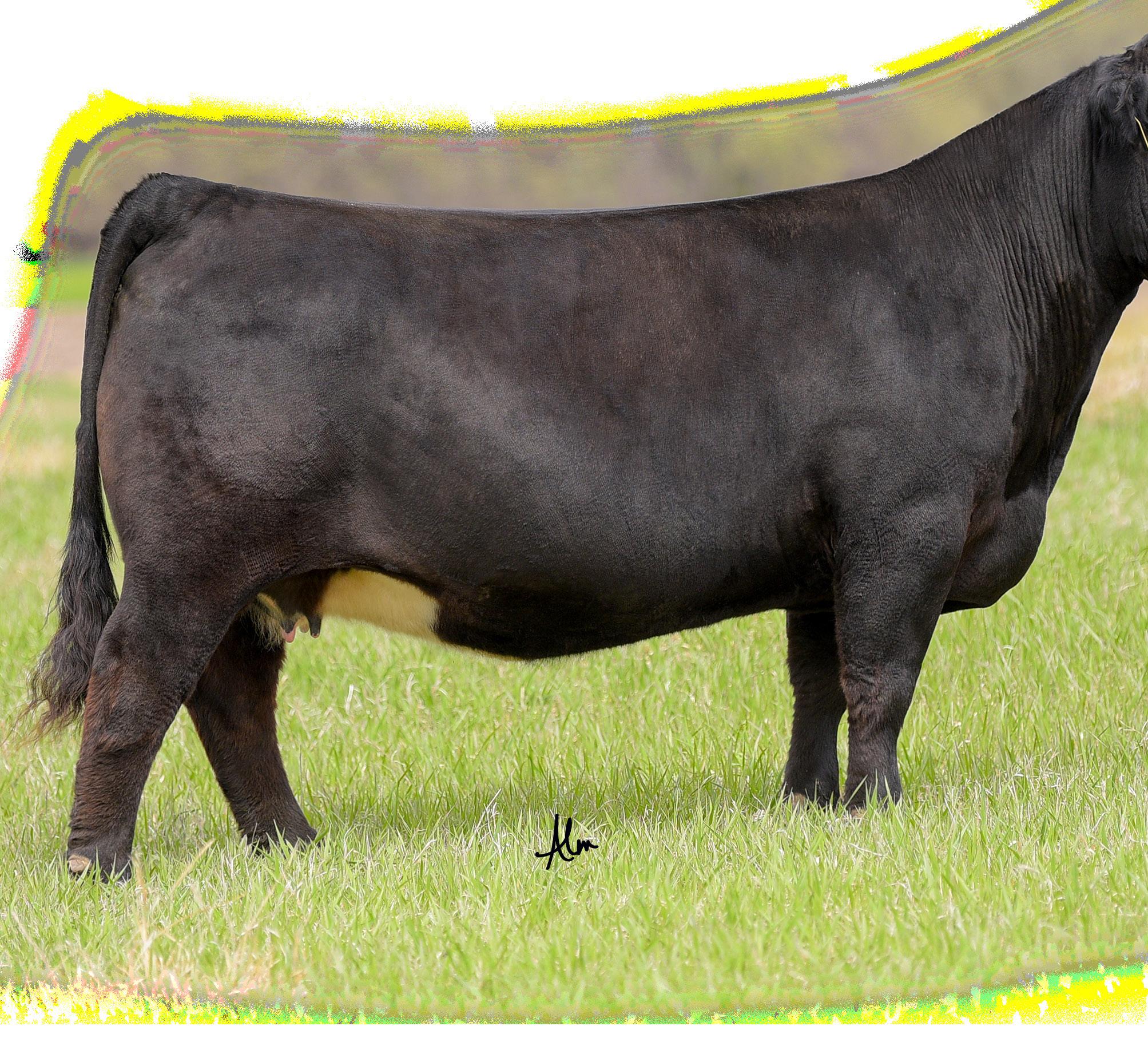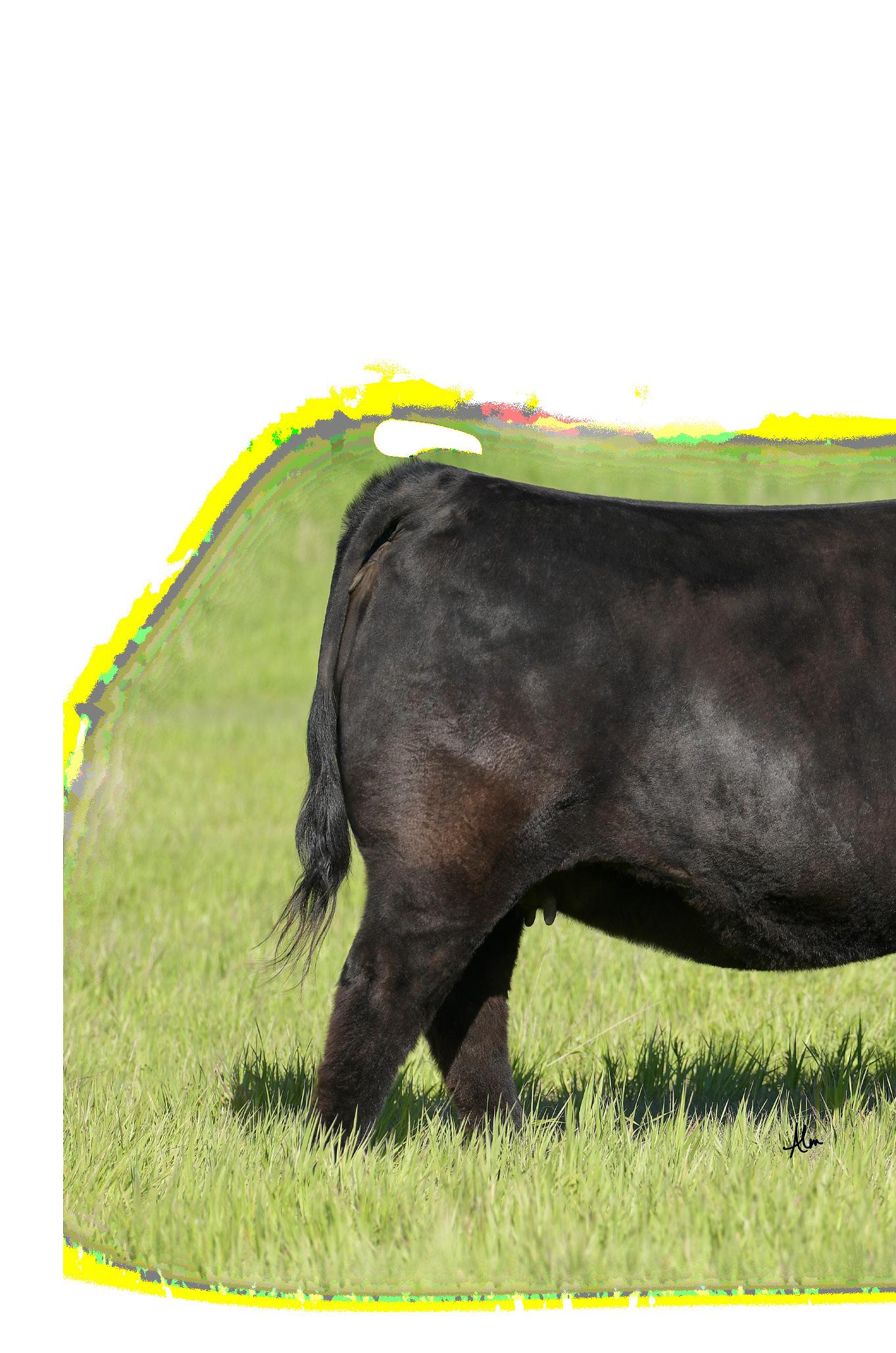 Elba 1454 is the very foundation we started this program with, striding on a near perfect strucutral design, a beautiful udder, with the added fertility required. The spring of 2020 brought her first crop of ET calves and yielded the high seller in the Major League Female Sale, who brought $29,000 for half interest, Lot 1 in the “Fashionably Late” sale who brought $16,000, a Broker daughter that brought $15,000 for half interest, and ROSE MC Encore 0463, owned with Tim Schaefer, Maplecrest Farms, and King Cattle Company, who brought $60,000 for a quarter interest, valuing him at $240,000, in Embryos On Snow. Since then, the story remains the same. With her progeny averaging $12,000 since that year, sons making a splash in many herds, and her best set yet on the ground this year, with a Vegas son that is sure to stir the pot this winter. To say she’s a generator, would be an understatement. This easy keeping female has the most incredible body shape, the perfect feet and legs, and she gladly goes against the angus stereotype and offers a laid back shoulder angle with a soft, square knee beneath. She ties her neck ridiculously high out of the topside of her shoulder, and you couldn’t ask for one to be better spined and more skeletally correct. This bold stifled angus female can grow hair that would put a Chi to shame, and has one of the most picture perfect udders when a calf is at side.