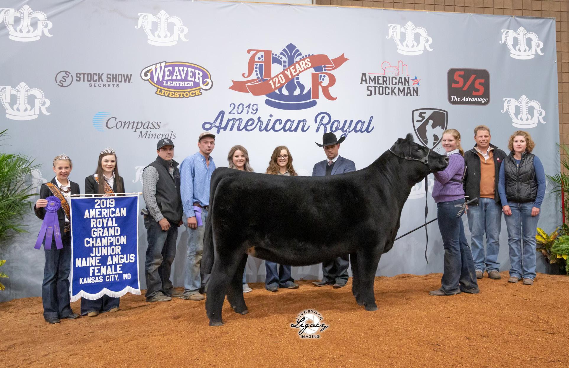 The first time making purebreds out of this proven matron. Maternal Sib Embryos to the Grand Champion Maine Angus at the 2019 American Royal, as well as the Supreme Champion Female at the 2019 Kansas State Fair! Another maternal sib brought $13,500 in the Major League Female Last fall, and won her division at OYE last month. After selling that Insight daughter campaigned by the Sleichter family that year, I decided to see if i could get my hands on the factory and make more. We haven’t had the opportunity to picture this donor yet, but how many cows do you know of that produced a Royal Champion and State Fair champion in their very first calf? This cow can put the incredibly desired look and design, and perfect structural setup in her progeny that earn high selling honors, and hang banners. The true testament to this cow’s genetic prowess, has been watching her daughters in production. They are knocking it out of the park time and time again, producing AI Sires such as Vanhove/Carter/Morton’s Me Too bull carried by CEG, and the high selling Maine Angus last fall in the Major League Sale that commanded $41,000.