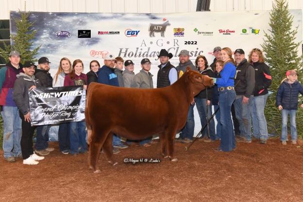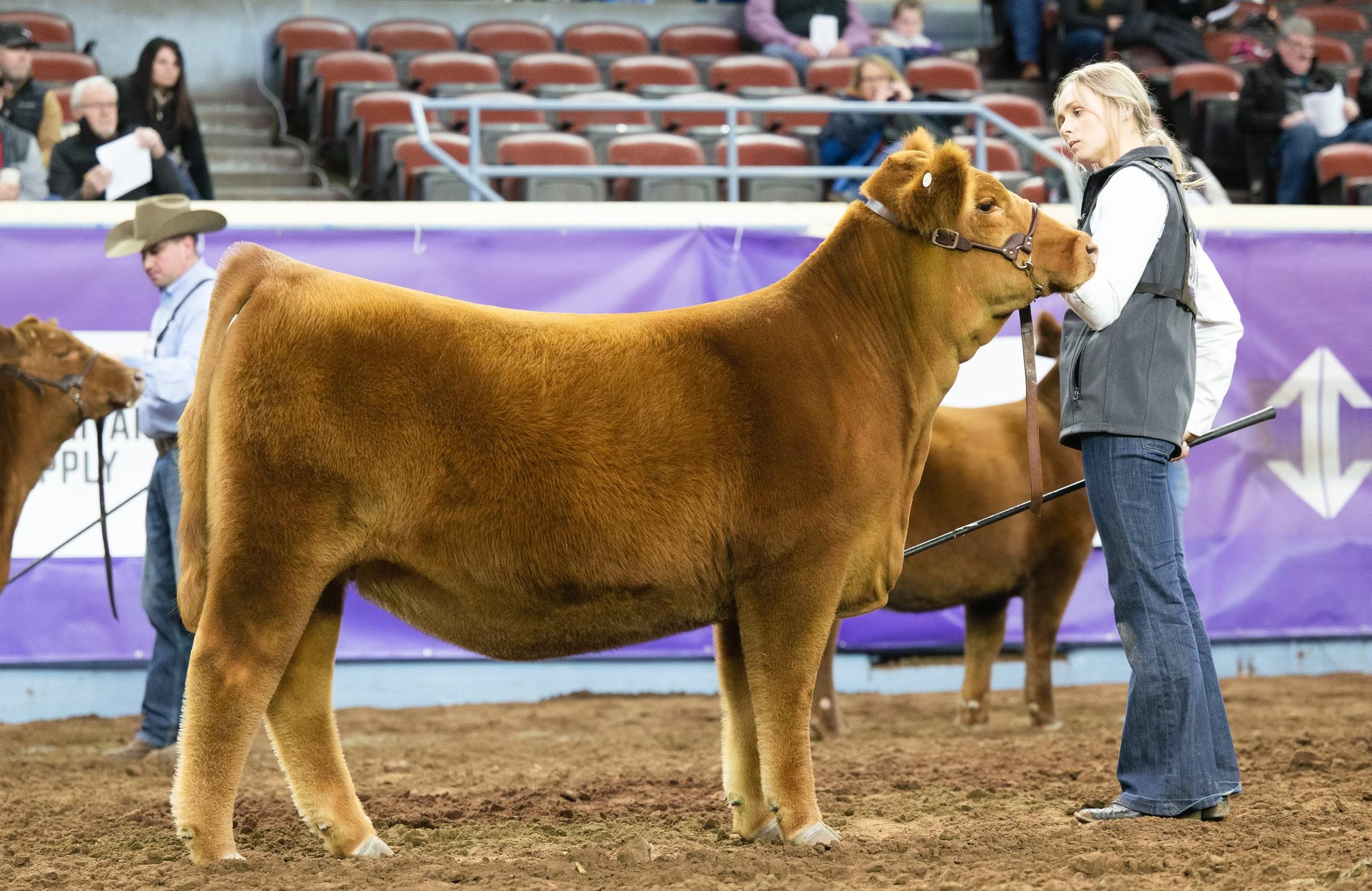 Reigning NWSS Champion Percentage Simmental female, as well as a many, many time champion throughout the 2022 season, that won nearly every single Jackpot she attended. She was the $41,000 high selling percent simmi in the 2021 Major League Female Sale. Perhaps the most impressive part is what she’s done since her campaign, laying down and having a stellar Lover Boy daughter, dropping a lights out udder, and performing absolutely textbook as a cow. She always possesed some exotic pieces, in regards to bone, flexibility, power, and tricked out front third and eye grabbing ear set. The Next Level purebreds this mating produces could hit the ringer next fall. owned by sleichter cattle company