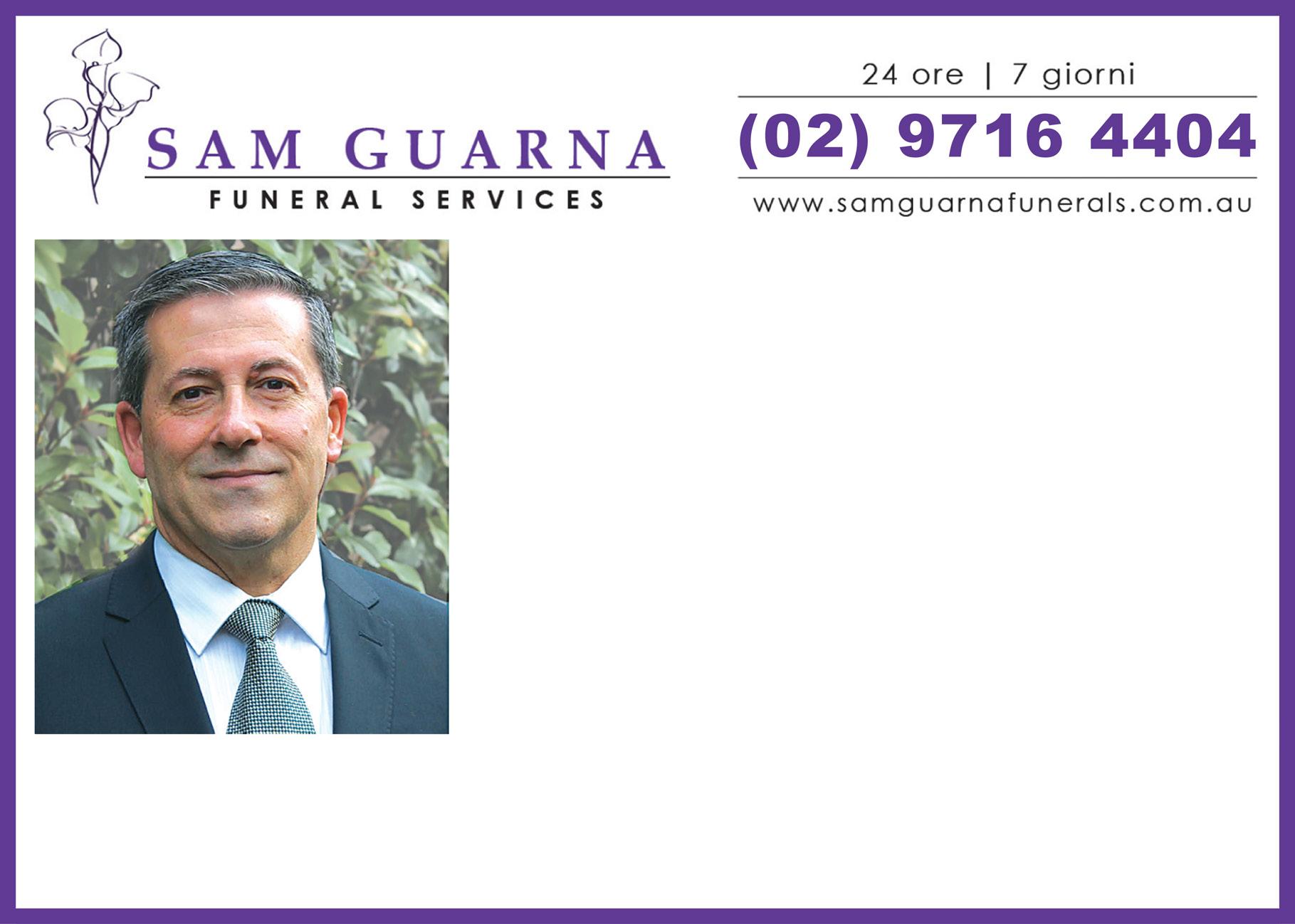 Io, Sam Guarna, sono disponibile ad aiutare la tua famiglia nel momento del bisogno. Sono stato conosciuto sempre per il mio eccezionale e sincero servizio clienti. So che, per aiutare le famiglie nel dolore, bisogna sapere ascoltare per poi poter offrire un servizio vero e professionale per i vostri cari e la vostra famiglia. Tutto ciò con rispetto, attenzione e fiducia, sempre.