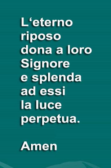 Ad un anno dalla sua dipartita la moglie Rita, i figli Joseph, Massimo e Rossella,i nipoti, i familiari, parenti e gli amici vicini e lontani la ricordano con affetto e dolore.