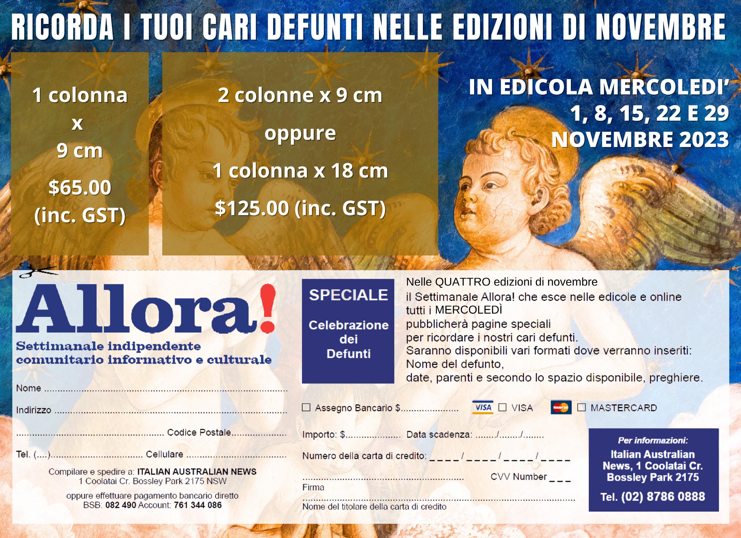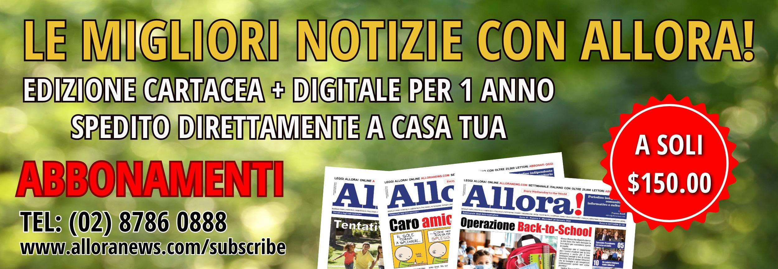 LEGGI ALLORA! ONLINE ALLORANEWS.COM SETTIMANALE ITALIANO CON OLTRE 25,000 LETTORI ABBONATI OGGI Periodico comunitario italo-australiano informativo e culturale