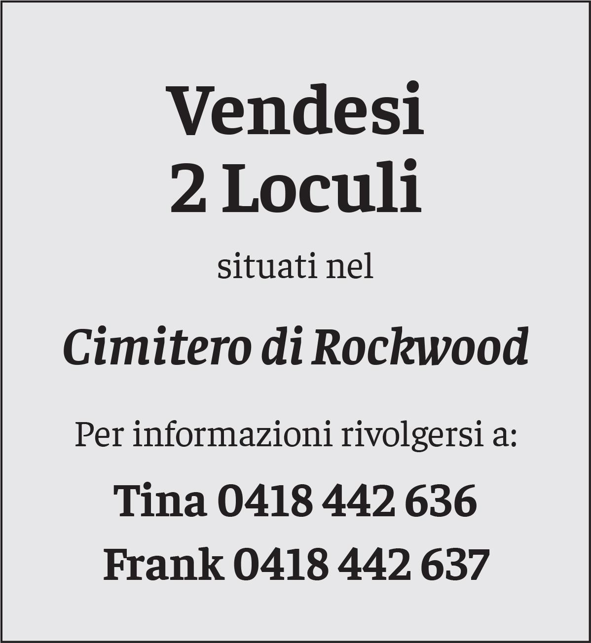 Caro e amato marito di Luciana (defunta) ad un anno dalla sua dipartita, i figli Frances e Andrew, Remo e Joanne, Sandro (defunto), Vicki e Silvio, i nipoti Olivia, Jasmine, Corinne, Anthony, Rhys, Melanie, Jemma, Juliet, Elena, parenti ed amici in Australia e in Italia lo ricordano con dolore e immutato affetto.