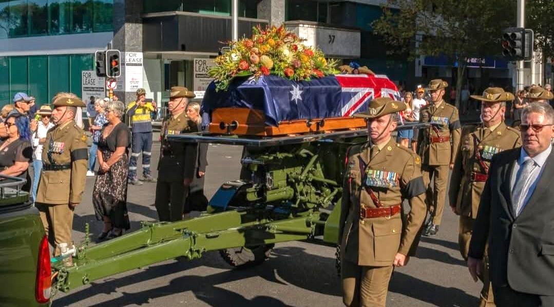 Un corteo militare guidato da una carrozza d’artiglieria e accompagnato dalla WA Army Band ha sfilato solennemente lungo St Georges Terrace fino alla Cattedrale di St George, dove si è tenuta la cerimonia funebre. In prima fila, la giacca di servizio di Arthur e il suo iconico cappello da soldato: simboli di una vita al servizio dell’Australia.