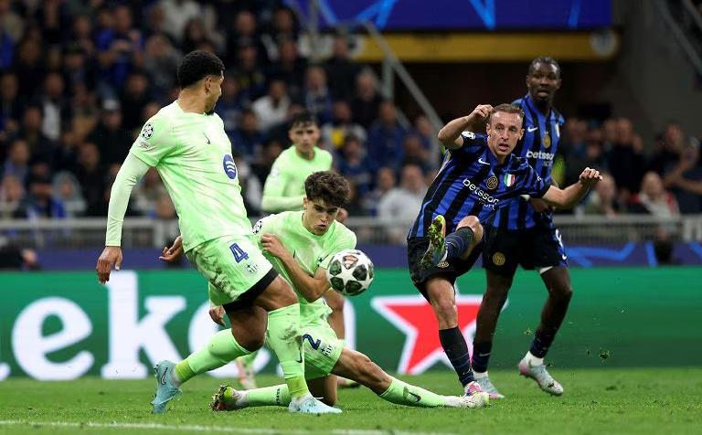 Gerard Martin crossa, Dimarco dimentica Eric Garcia, che insacca (2-1). Al 60' è Carlos Augusto, subentrato a Dimarco, a perdere la marcatura su Dani Olmo, che firma il 2-2. L'Inter annaspa, vacilla e rischia di crollare definitivamente quando Mkhitaryan stende Lamine Yamal appena fuori area: il VAR corregge la chiamata di Marciniak che aveva visto rigore. A due minuti
