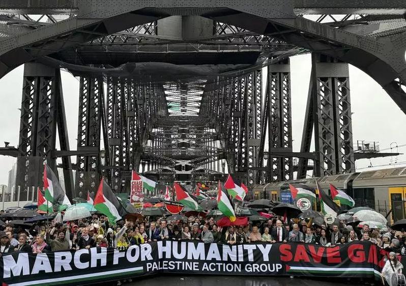 Per cinque ore, oltre 40.000 manifestanti hanno attraversato nel weekend il Sydney Harbour Bridge in una marcia pro-Palestina senza precedenti.