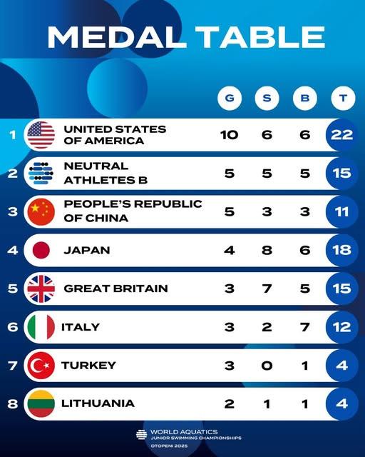 Molto bene anche nel nuoto dove gli azzurrini salgono sul podio ben 12 volte. In vasca da 50 metri, in grande evidenza Carlos D’Ambrosio che si porta a casa ben sette medaglie (due d’oro), staffette comprese.