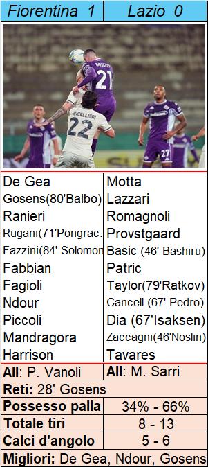 La Fiorentina conquista una vittoria importantissima in chiave salvezza, battendo 1-0 la Lazio e portando a 8 i punti di vantaggio su Cremonese e Lecce.